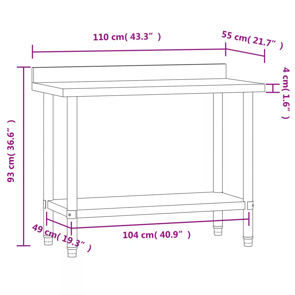 - Tartós anyag: A munkaasztal strapabíró rozsdamentes acélból készült, amely ellenáll a korróziónak és a rozsdának, és évekig megbízható használatot biztosít. Könnyen tisztára dörzsölhető és törölhető.