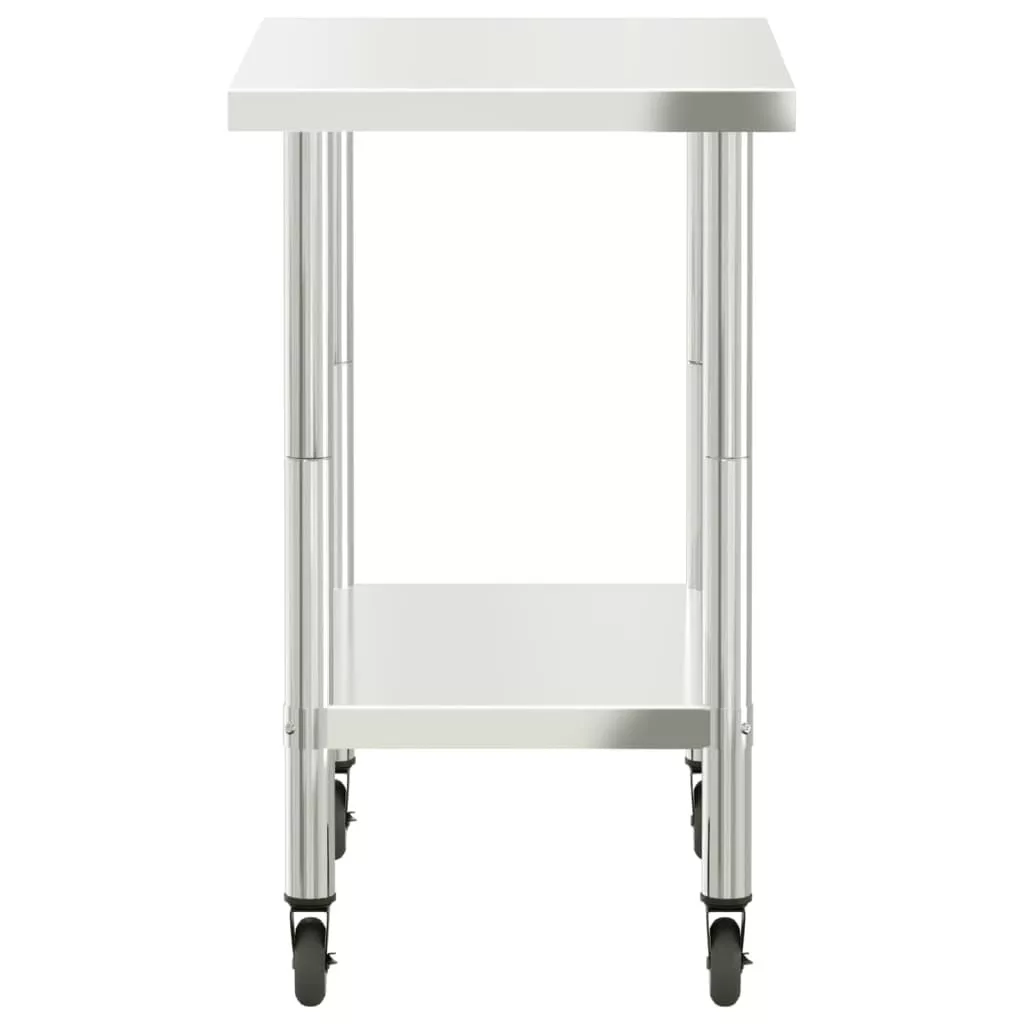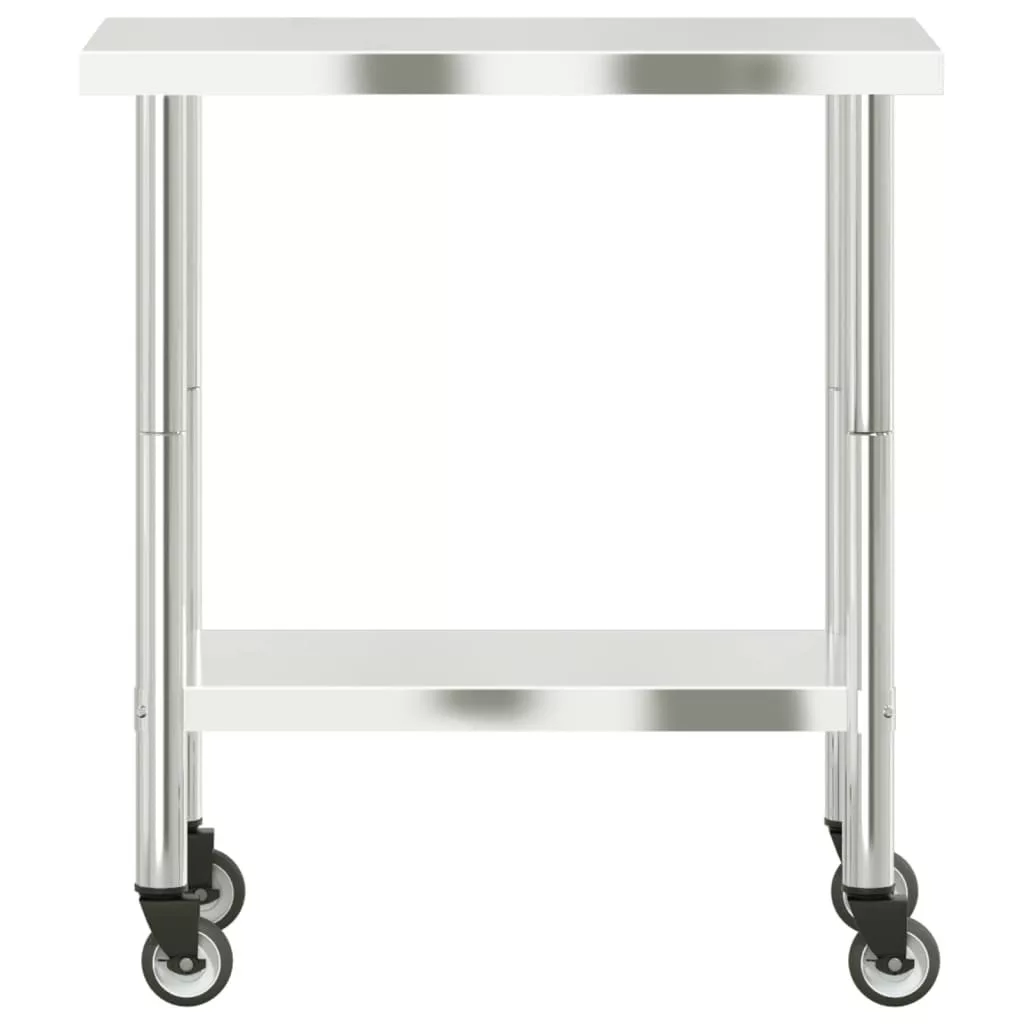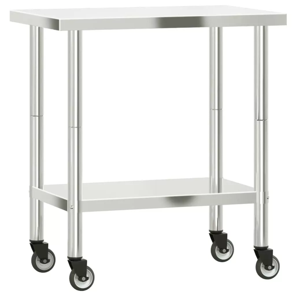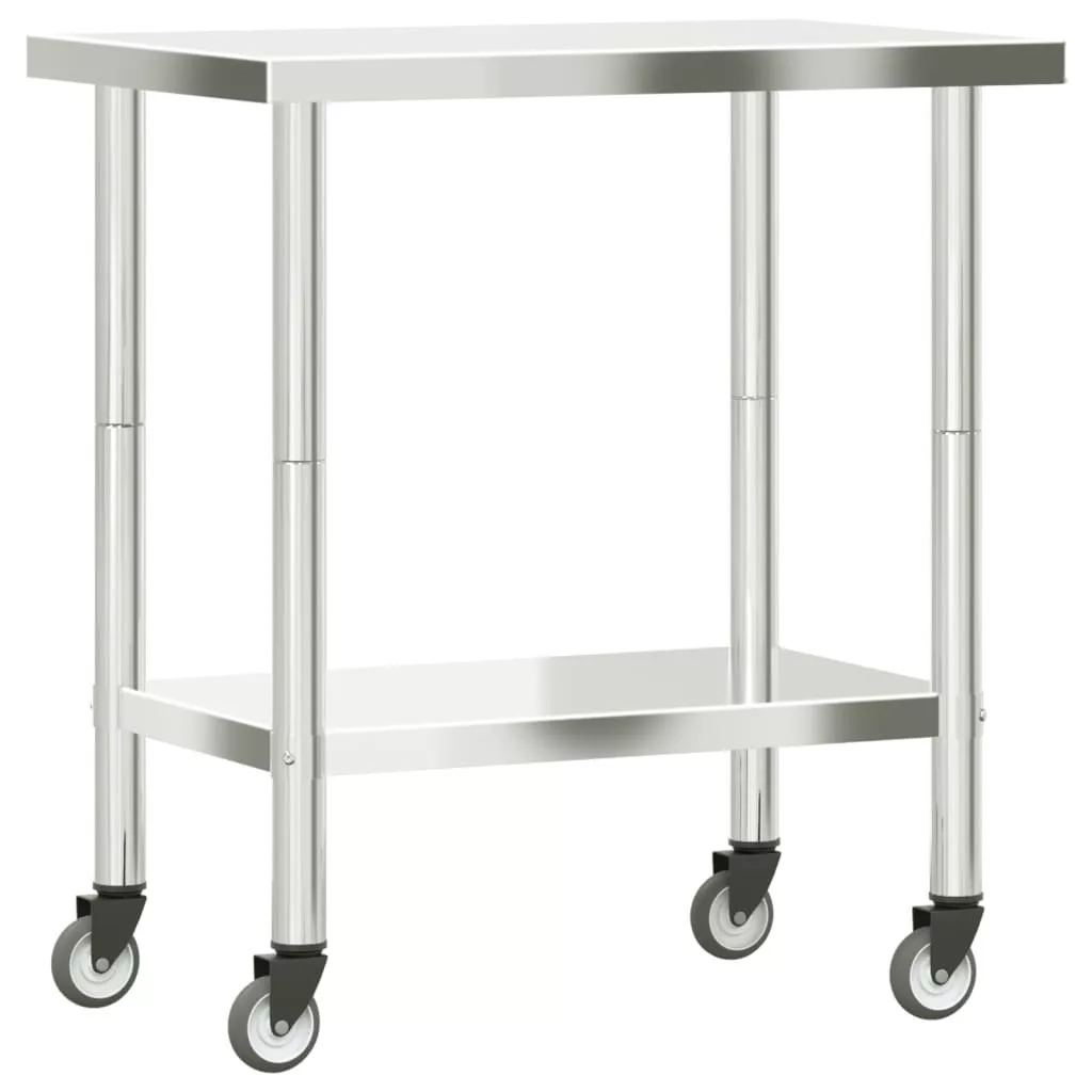 vidaXL rozsdamentes acél konyhai munkaasztal kerekekkel 82,5x55x85 cm