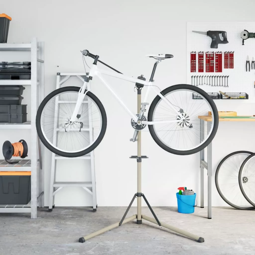 - Rögzítőrúd a stabilitás érdekében: A teleszkópos rögzítőrúd stabilan tartja a kerékpár első kerekeit vagy a kormányrudat, megakadályozva a rázkódást vagy a kilengést a javítás közben.