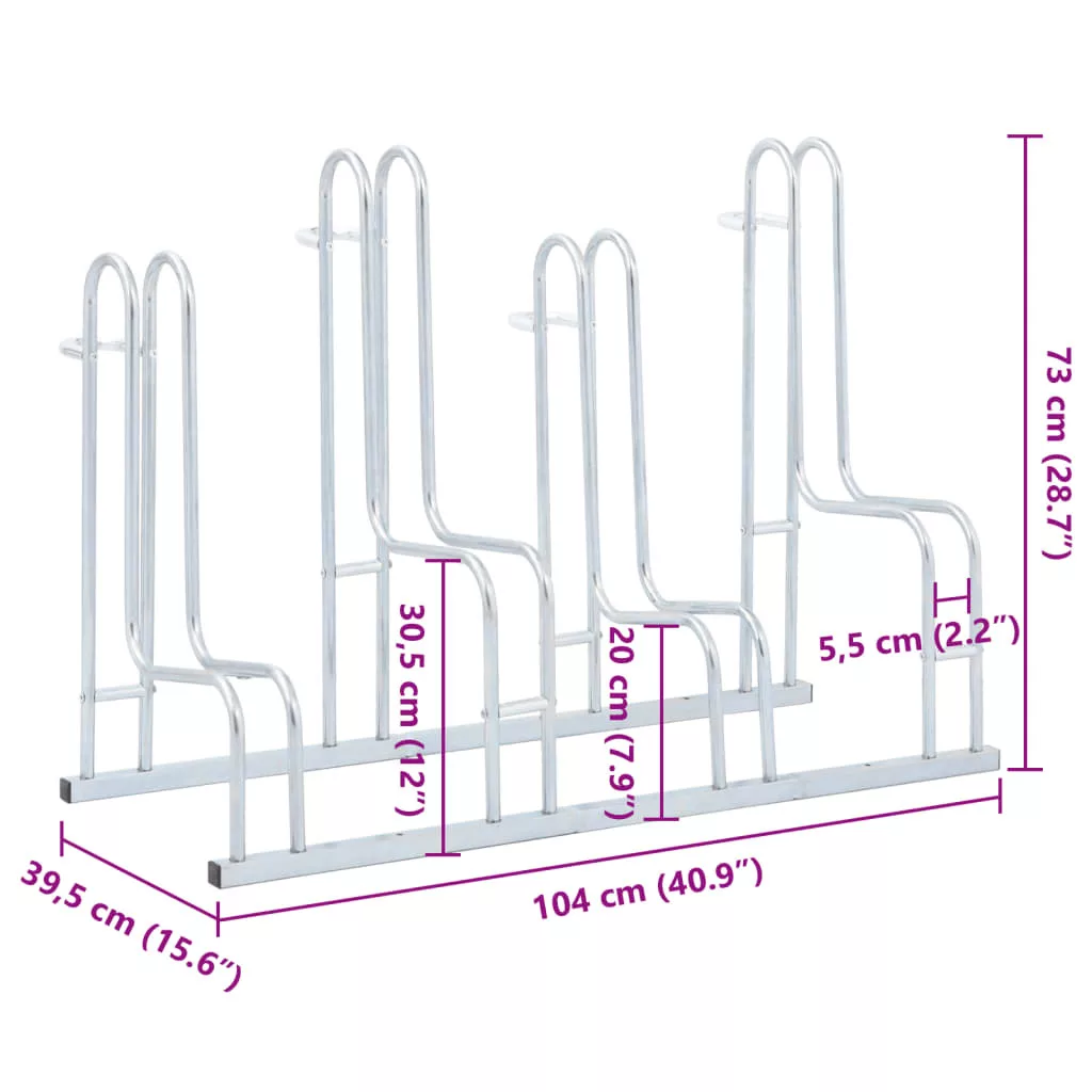 - Helytakarékos: Ez a kerékpártartó magas-alacsony kerékkialakítású, és négy bicikli tárolására alkalmas anélkül, hogy a kormányok összegabalyodnának, így optimalizálja a helyet a hatékony tároláshoz.