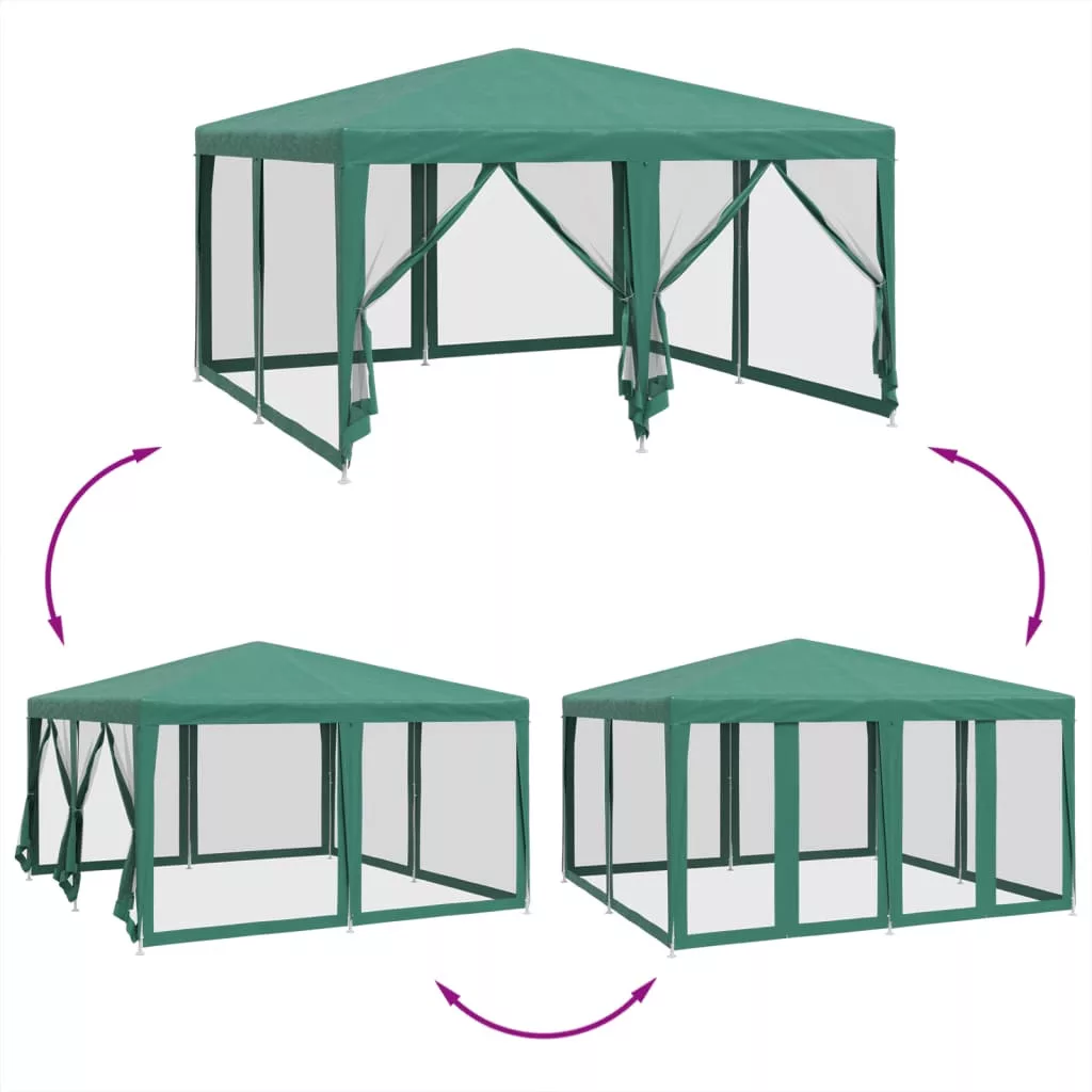 Ez a nagy teherbírású vasvázzal, vízálló tetővel és nyolc hálós oldalfallal rendelkező, rendkívül menő rendezvénysátor ideális menedéket nyújt a nap ellen.