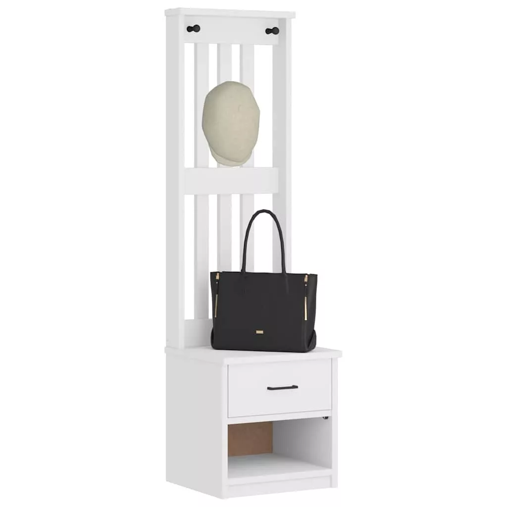 - Gyakorlati horgok: Az előszobaszekrény 3 kampóval van felszerelve a táskák, kabátok, esernyők, kulcsok és egyebek felakasztásához, így segít helyet megtakarítani és rendben tartani a szobát.