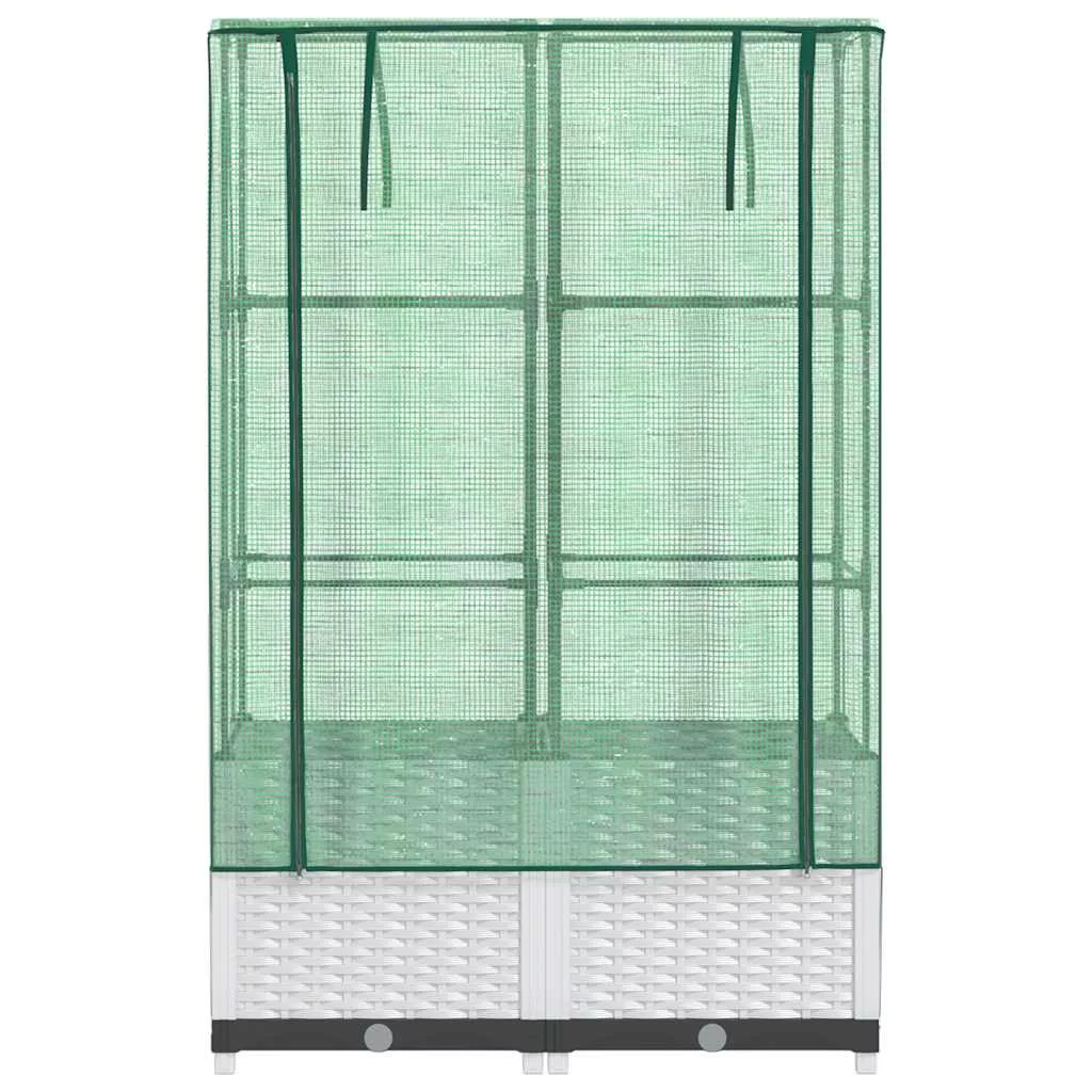 - Praktikus borítás: A magaságyás vízálló polietilén borítással rendelkezik, amely megvédi a növényeket a szélsőséges hőmérséklettől, és távol tartja a rovarokat, a madarakat, és a kisállatokat.