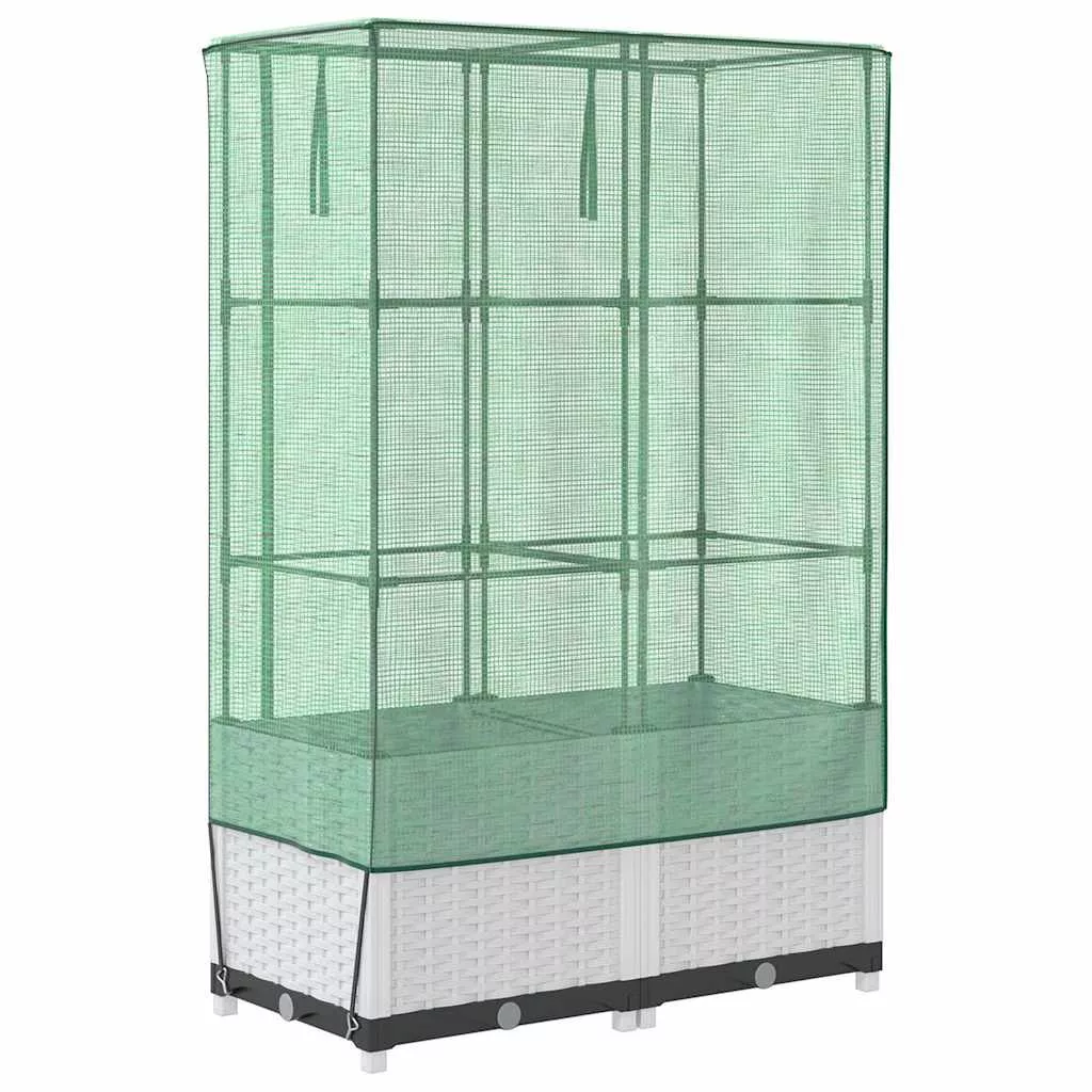 - Stabil felépítés: A polipropilénből készült magaságyás tetején egy stabil vascső keret található, amely lehetővé teszi a növények számára, hogy növekedjenek és felkússzanak rajta.
