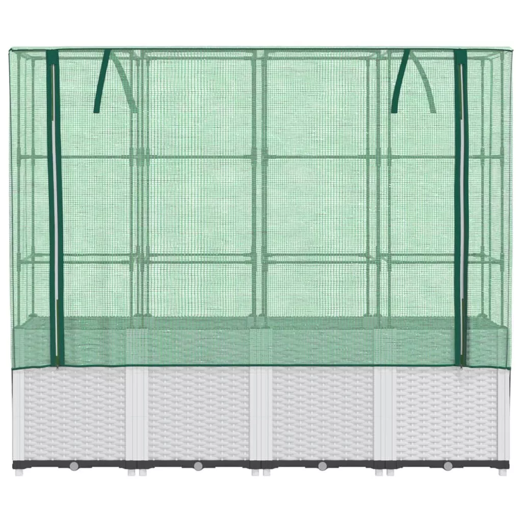 - Stabil felépítés: A polipropilénből készült magaságyás tetején egy stabil vascső keret található, amely lehetővé teszi a növények számára, hogy növekedjenek és felkússzanak rajta.