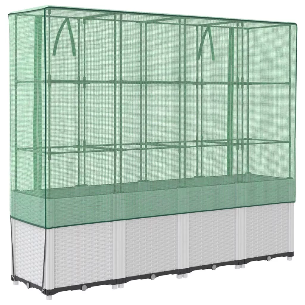 - Praktikus borítás: A magaságyás vízálló polietilén borítással rendelkezik, amely megvédi a növényeket a szélsőséges hőmérséklettől, és távol tartja a rovarokat, a madarakat, és a kisállatokat.