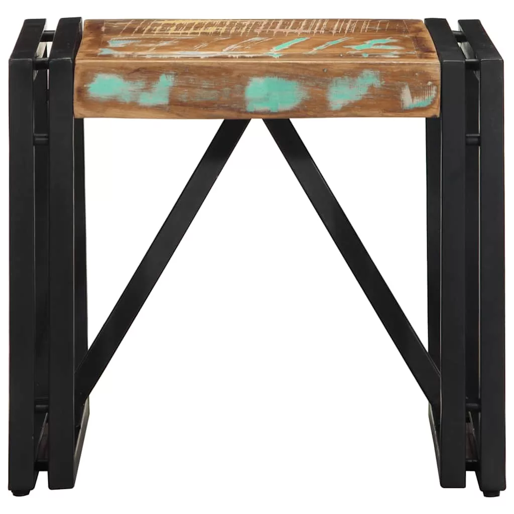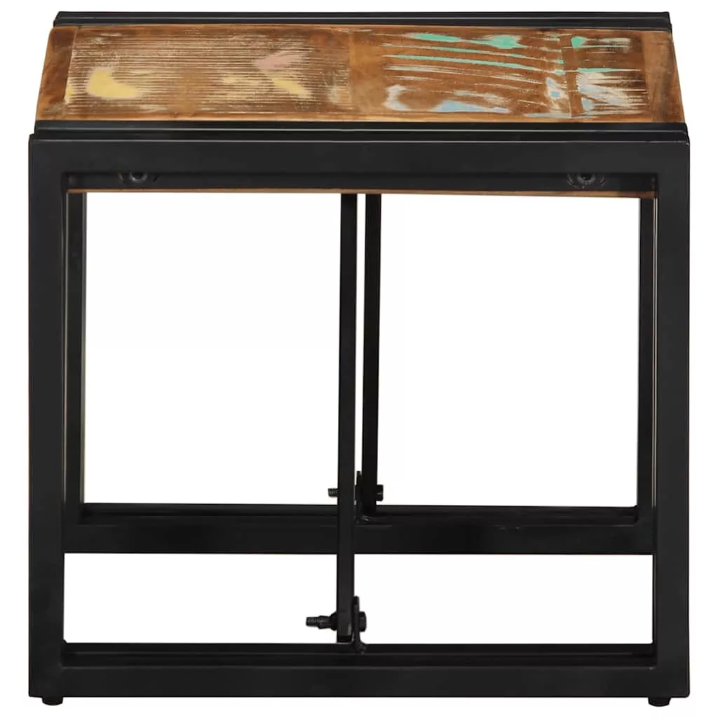 - Anyaga: tömör újrahasznosított fa vegyes színű felületkezeléssel, porszórt vas