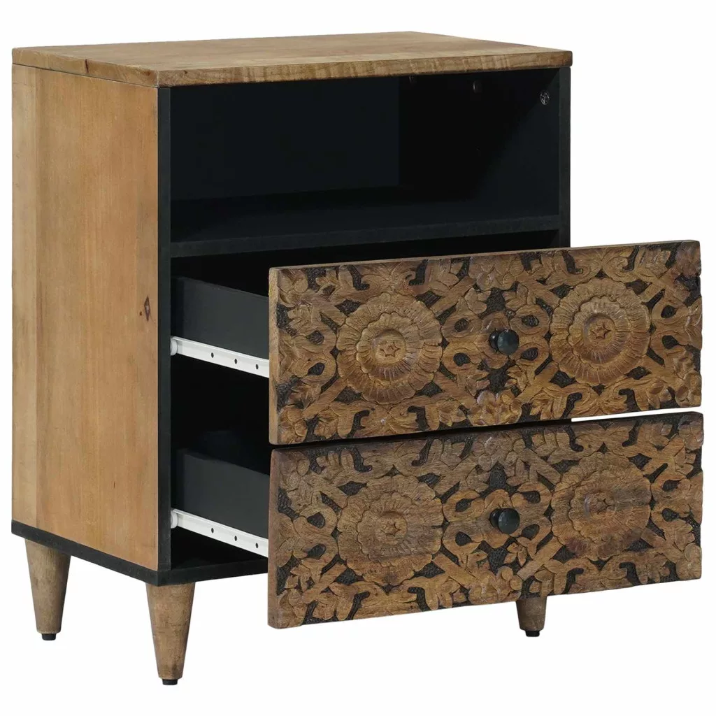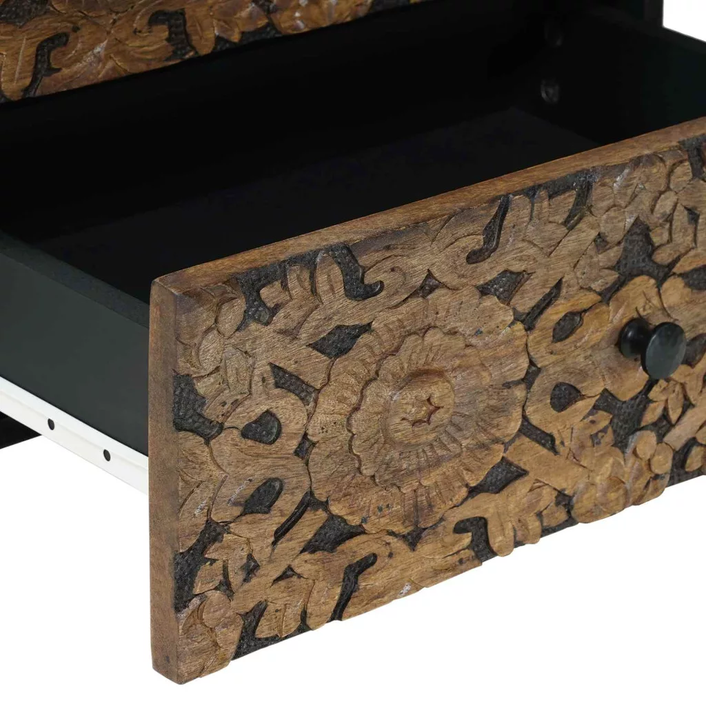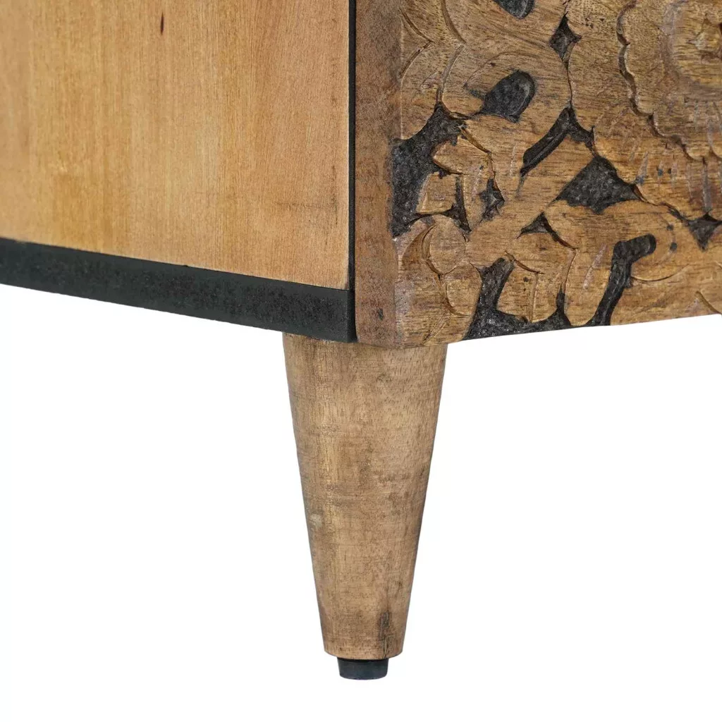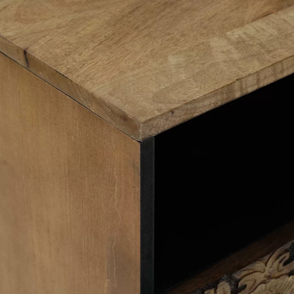 - Tömör mangófából készült: A szekrény tömör mangófából van, ami híres a tartósságáról és a napi használatnak való ellenállásáról. Robusztus kialakítása biztosítja a tartósságot, az egyedi erezeti minták pedig szépséget és személyiséget kölcsönöznek minden darabnak. Ez az anyag megbízható és stílusos megoldás a belső terekhez.