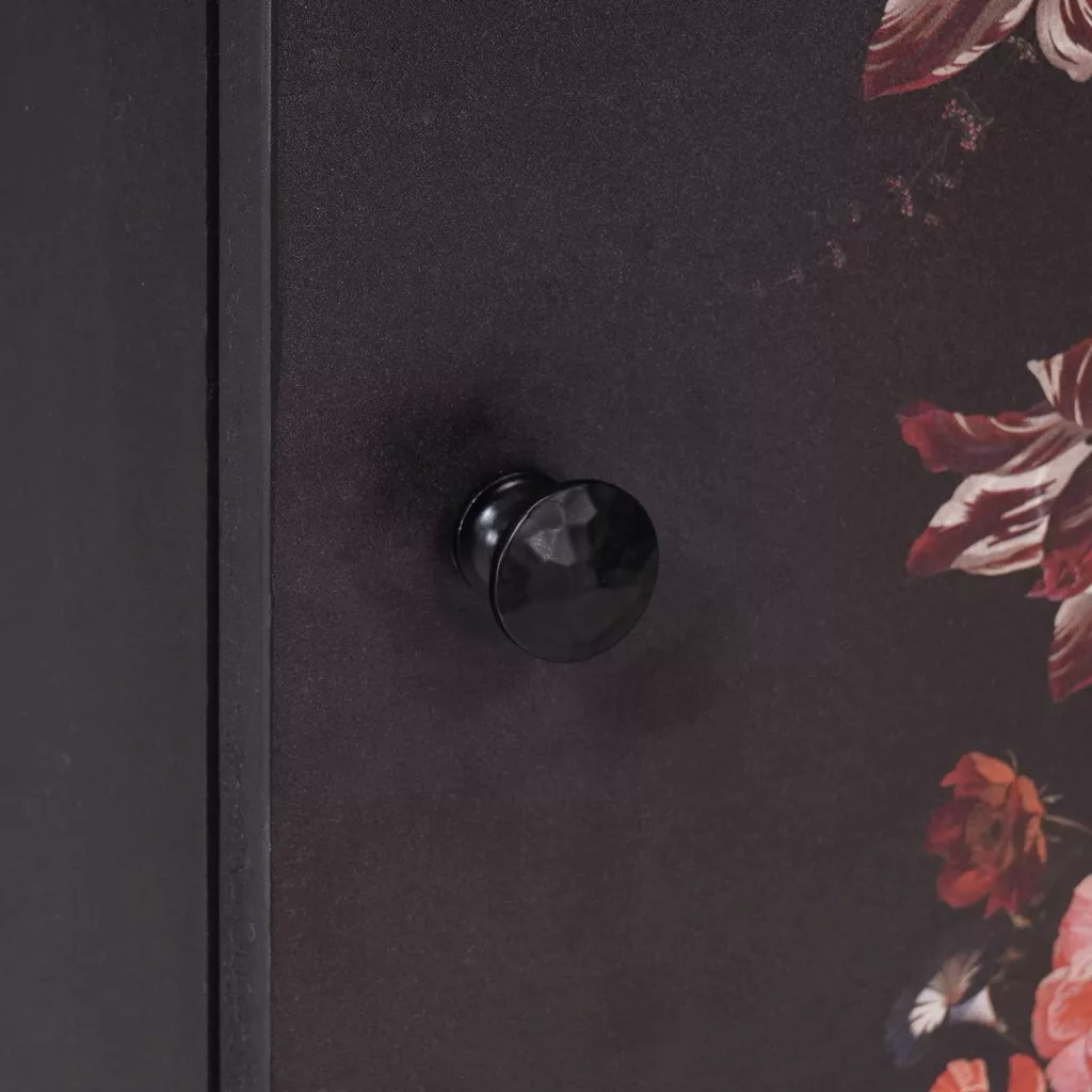 - Funkciók / Kialakítás: A szekrény dekoratív virágmintái művészi stílust adnak a média tárolásának. Az ajtók könnyű hozzáférést biztosítanak a tágas polcokhoz, ahol a készülékeid és médiáid szépen elférnek. Modern formája pedig a letisztultság szimbóluma, bármilyen belső stílushoz illik.