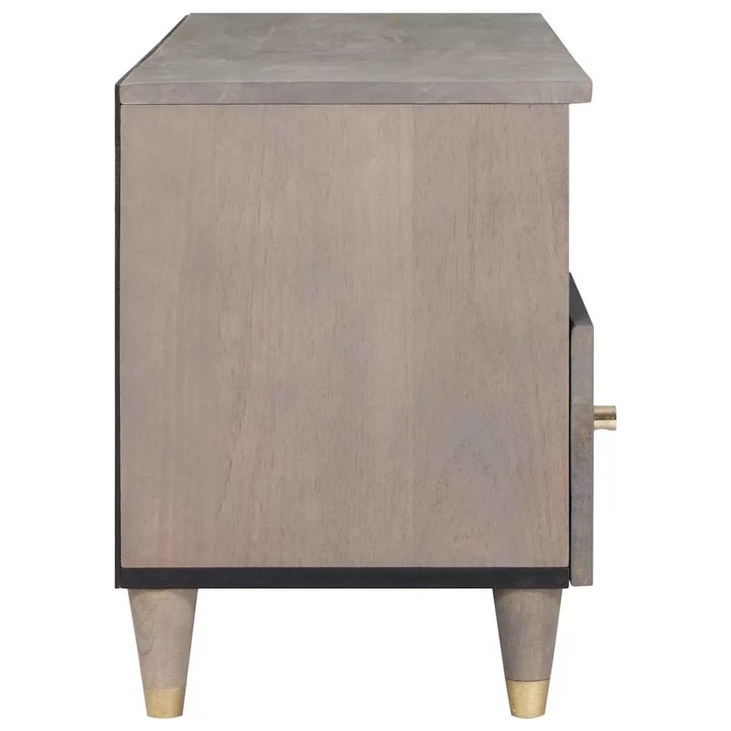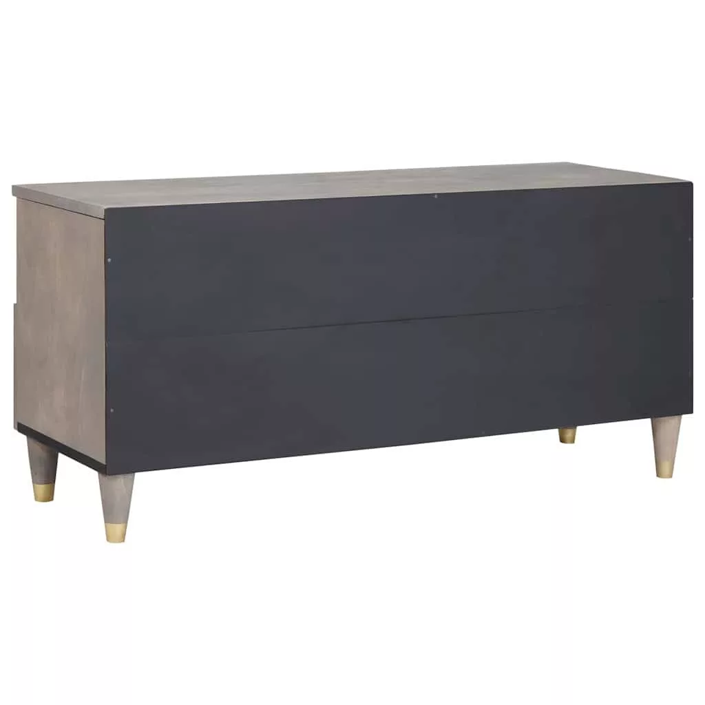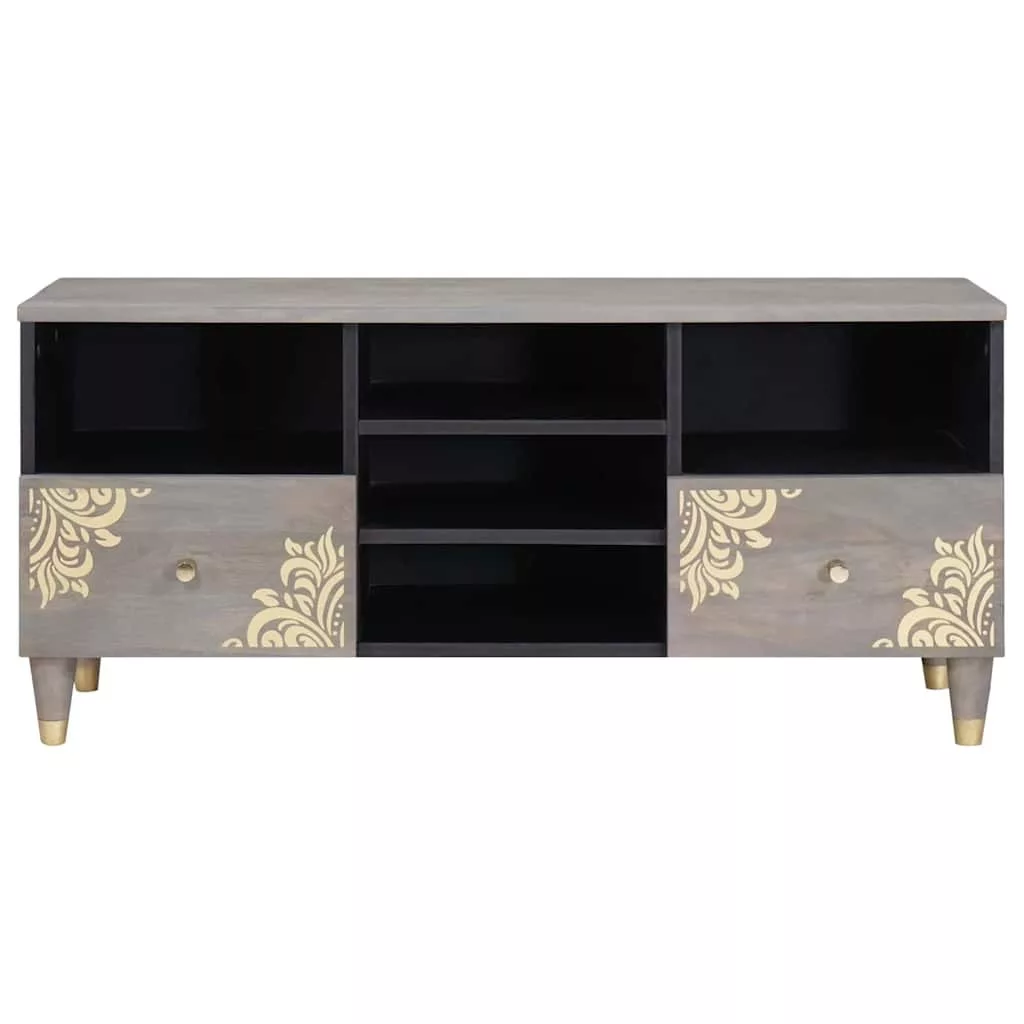 Ez a tárolós TV szekrény a modern nappalik slágere! Tiszta vonalai és funkcionális dizájnja minden belső térbe jól illeszkedik. Elegáns arany árnyalatú burkolata feldobja a megjelenést, bármilyen stílust is képviseljen a lakásod. Tömör mangó anyaga miatt tartós és időtálló megoldás.