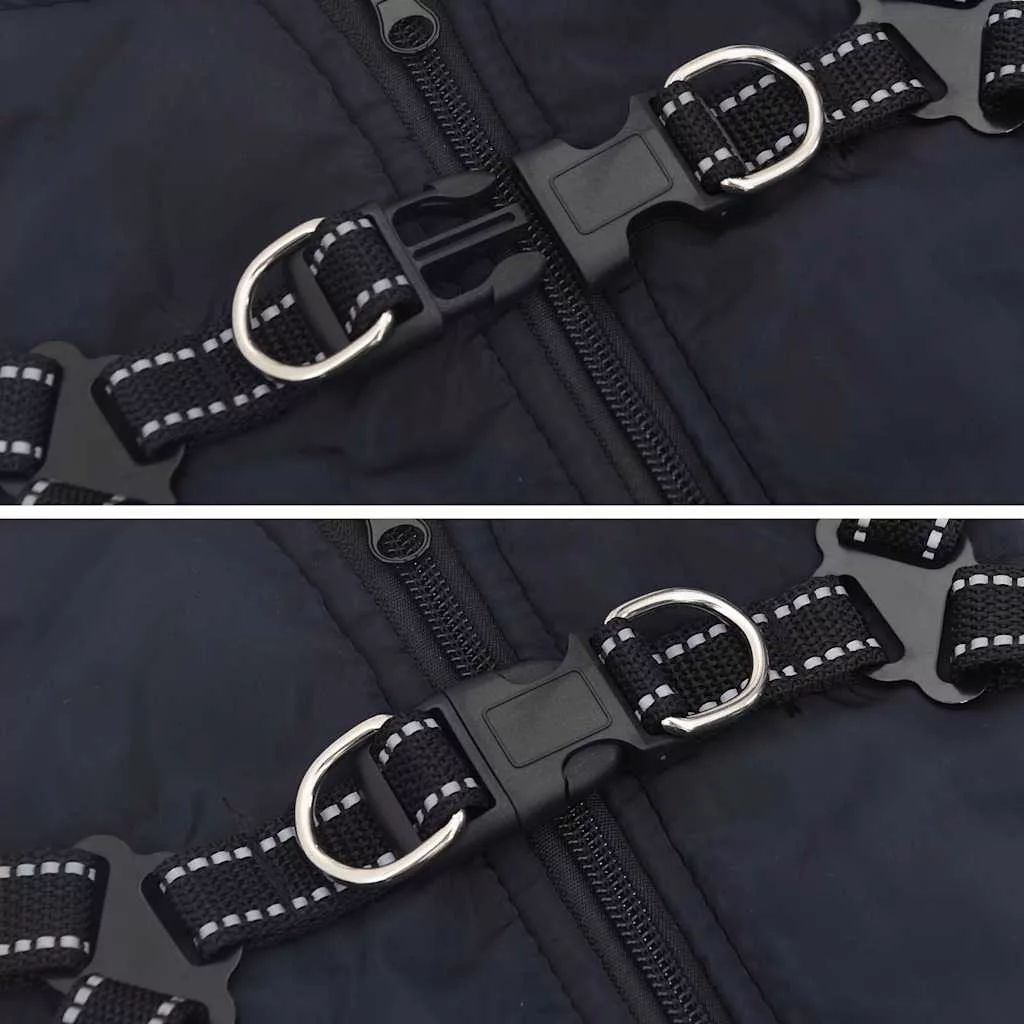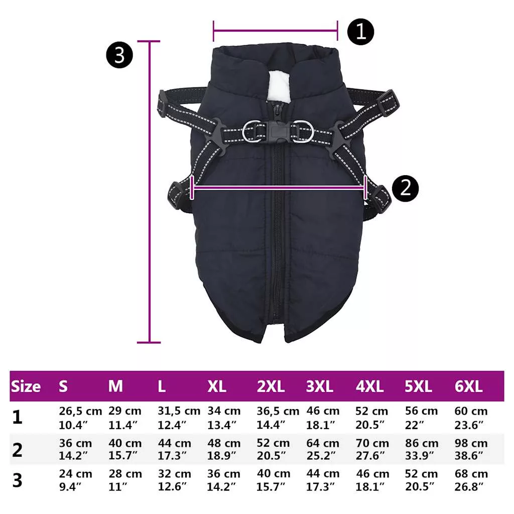 Tartsa melegen kutyáját a hideg napokon ezzel a kényelmes, beépített hámmal ellátott kutyakabáttal!