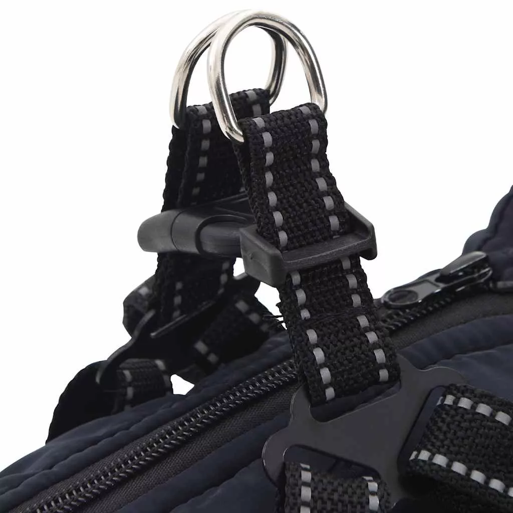 - D-gyűrűs rögzítés: A stabil D-gyűrűk tökéletesen alkalmasak a póráz biztonságos rögzítésére, ami további biztonságot nyújt, és ideális választássá teszi a sétákhoz.