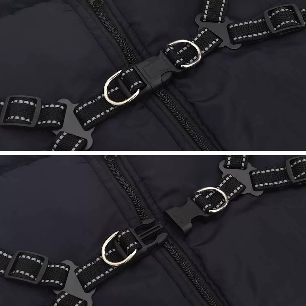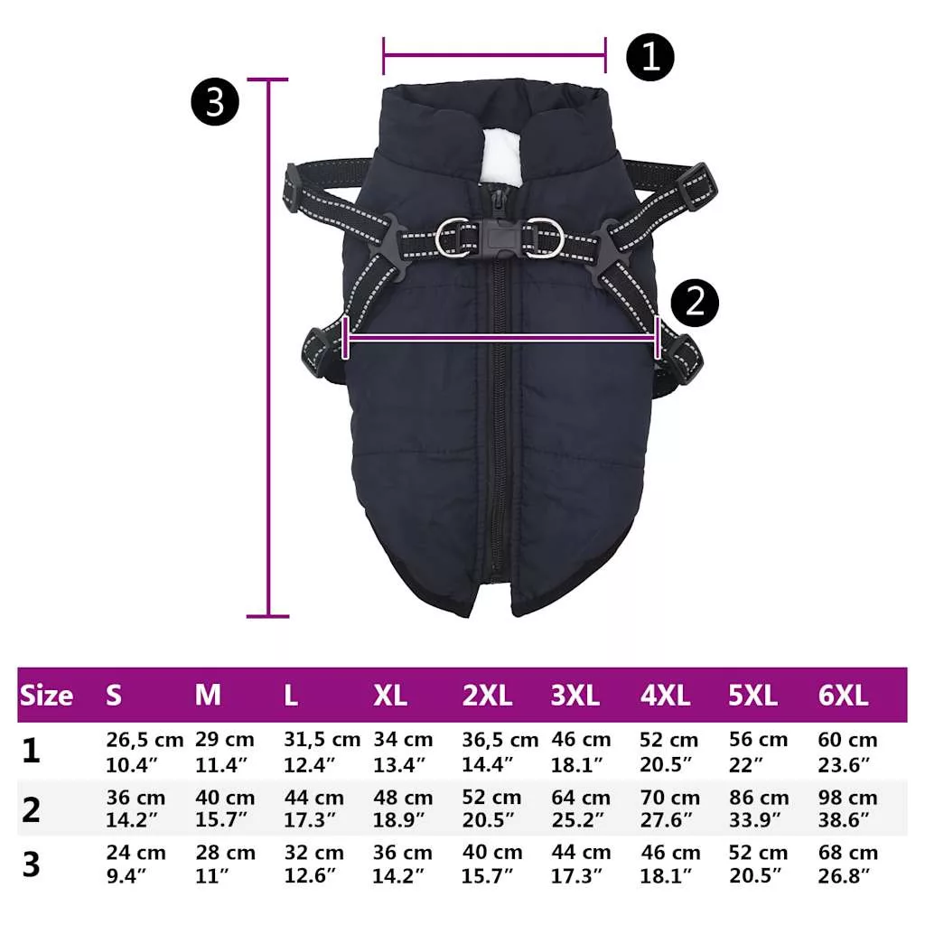 Tartsa melegen kutyáját a hideg napokon ezzel a kényelmes, beépített hámmal ellátott kutyakabáttal!