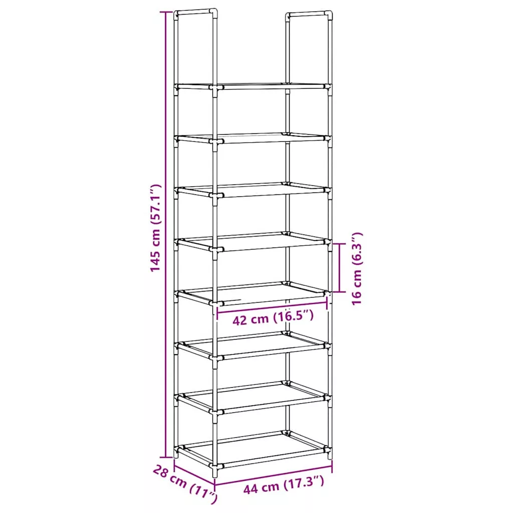 - Bőséges tárolóhely: A 8 szintes kialakításnak köszönhetően ez a cipőtároló bőséges tárolókapacitást biztosít, lehetővé téve, hogy a teljes cipőkollekcióját rendben és jól rendszerezve tartsa egy kényelmes helyen.