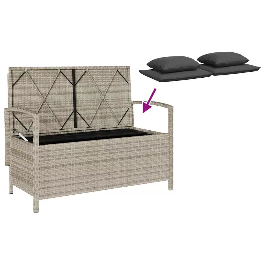 Ez a kerti tároló pad nemcsak szabadtéri ülőhelyet kínál, hanem arra is tökéletes, hogy a kültéri bútorok párnáit, kerti kellékeket, medencetörölközőket és egyéb tárgyakat rendezetten és könnyen hozzáférhetően tartsa.