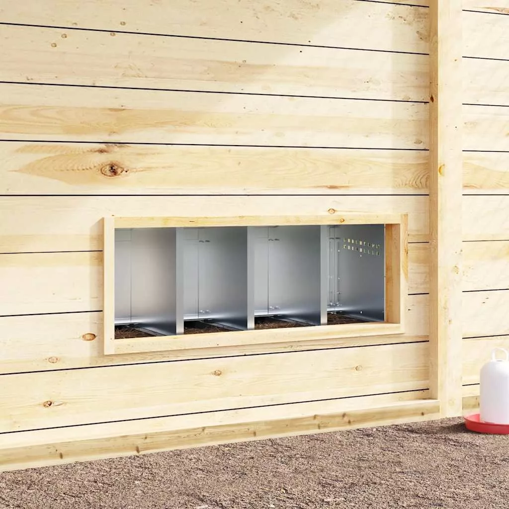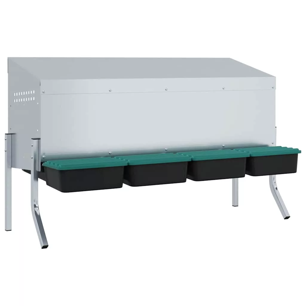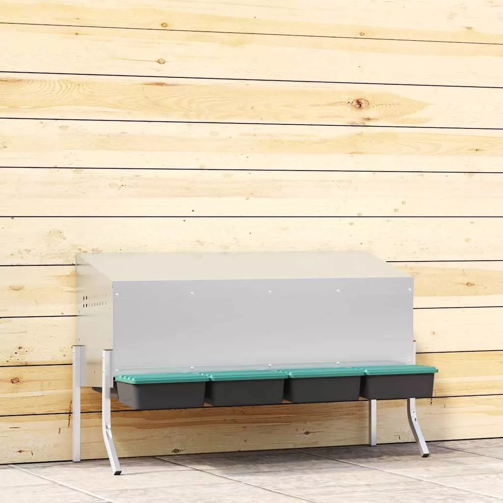 - Robusztus és tartós anyag: Horganyzott acélból és erős polipropilén műanyagból készült, ez a fészkelő láda tartós használatra készült, hosszú távú teljesítményt és védelmet nyújt csirkéinek a zord kültéri körülményekkel szemben.