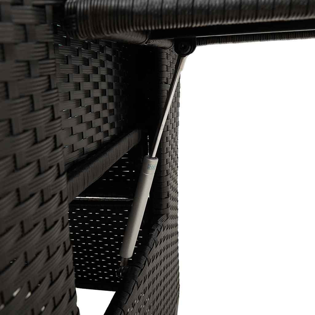 - Kényelmes kisasztal: Ez a kerti bútor összecsukható kisasztallal rendelkezik, a karfán gázrugóval, amely kényelmes helyet biztosít, hogy a legfontosabb dolgokat könnyen elérhető helyen tartsa.