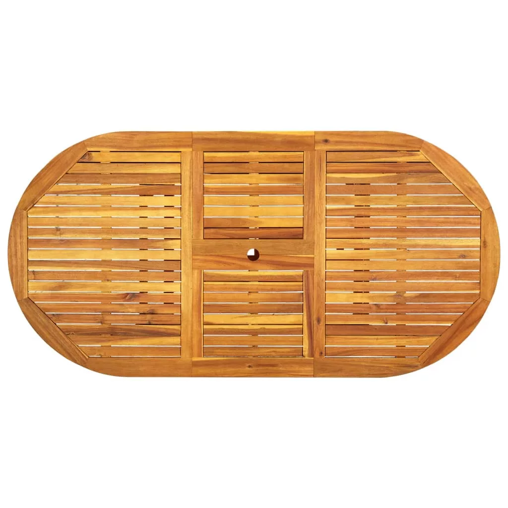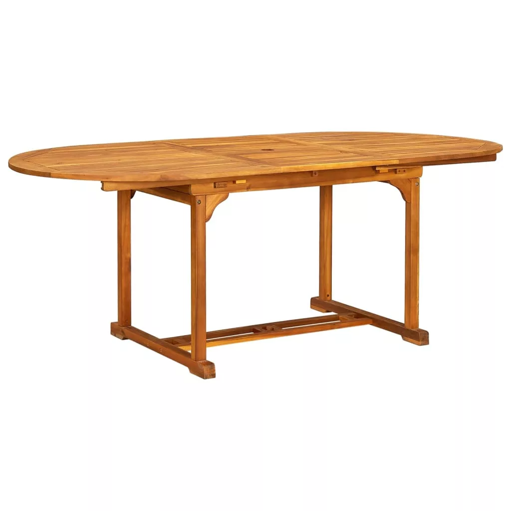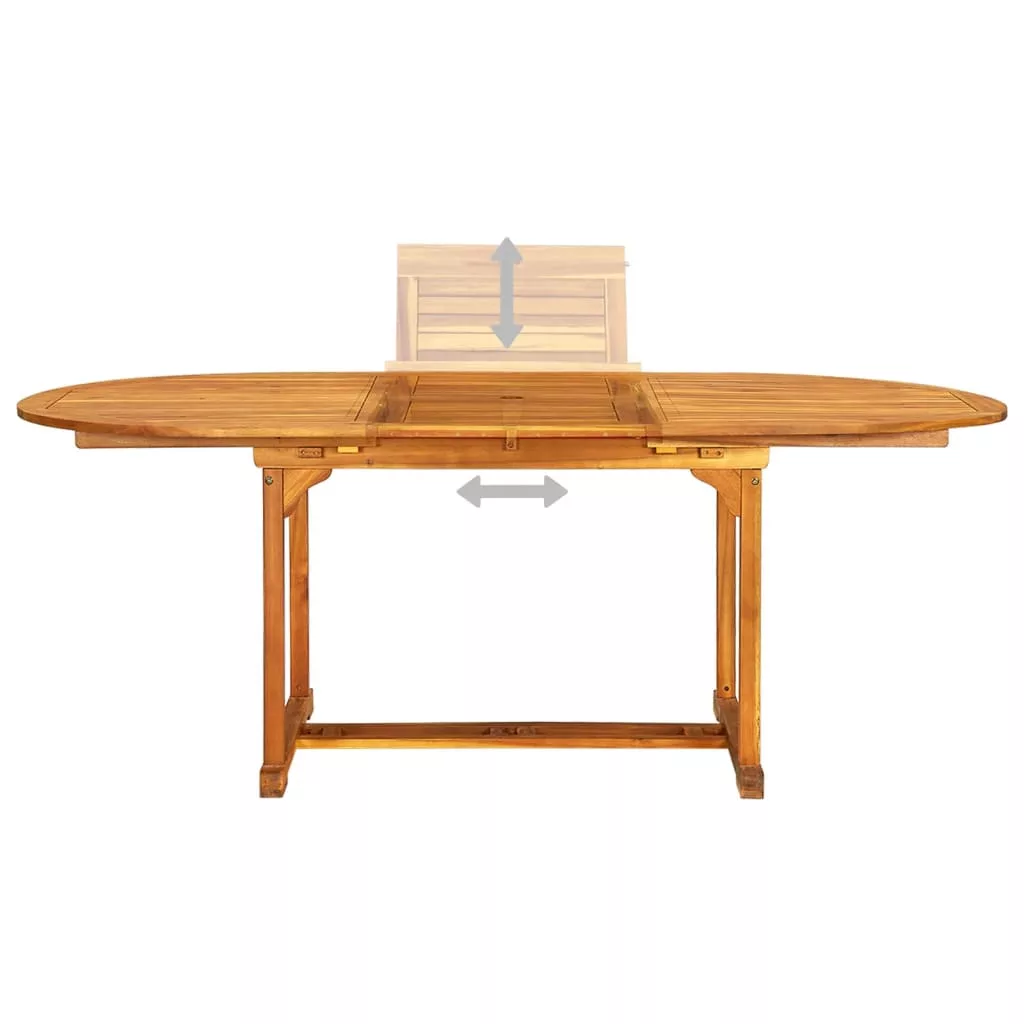 Ez a stílusos, modern fa étkezőszett az 1 ovális bővíthető asztallal és a 6 összecsukható székkel tökéletes a kertben vagy a teraszon való étkezésre.