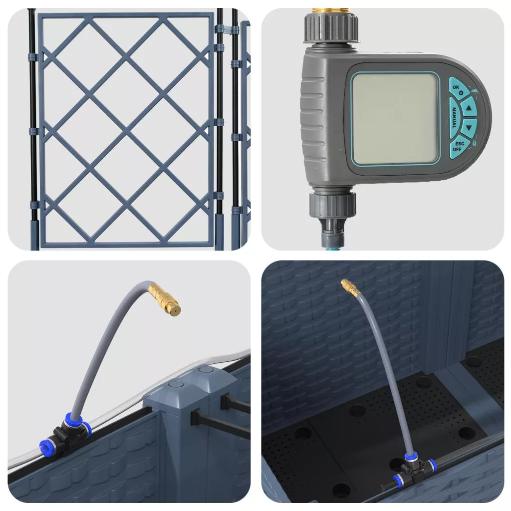 - Öntöző rendszer: Beépített öntöző megoldása fenntartja a növények optimális növekedését az állandó nedvességgel. Ideális olyanoknak, akiknek sűrű a programjuk, mégis szeretnék egészséges növényeket, anélkül, hogy naponta öntözniük kellene.