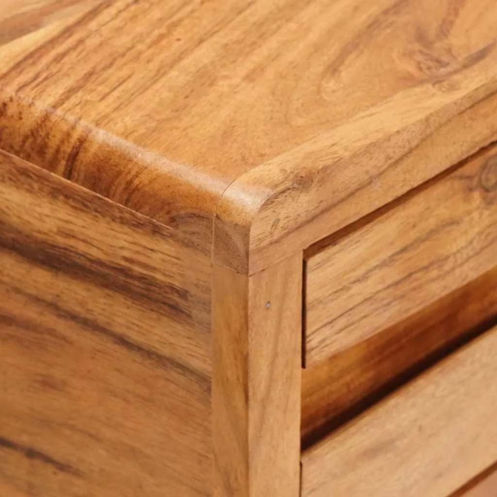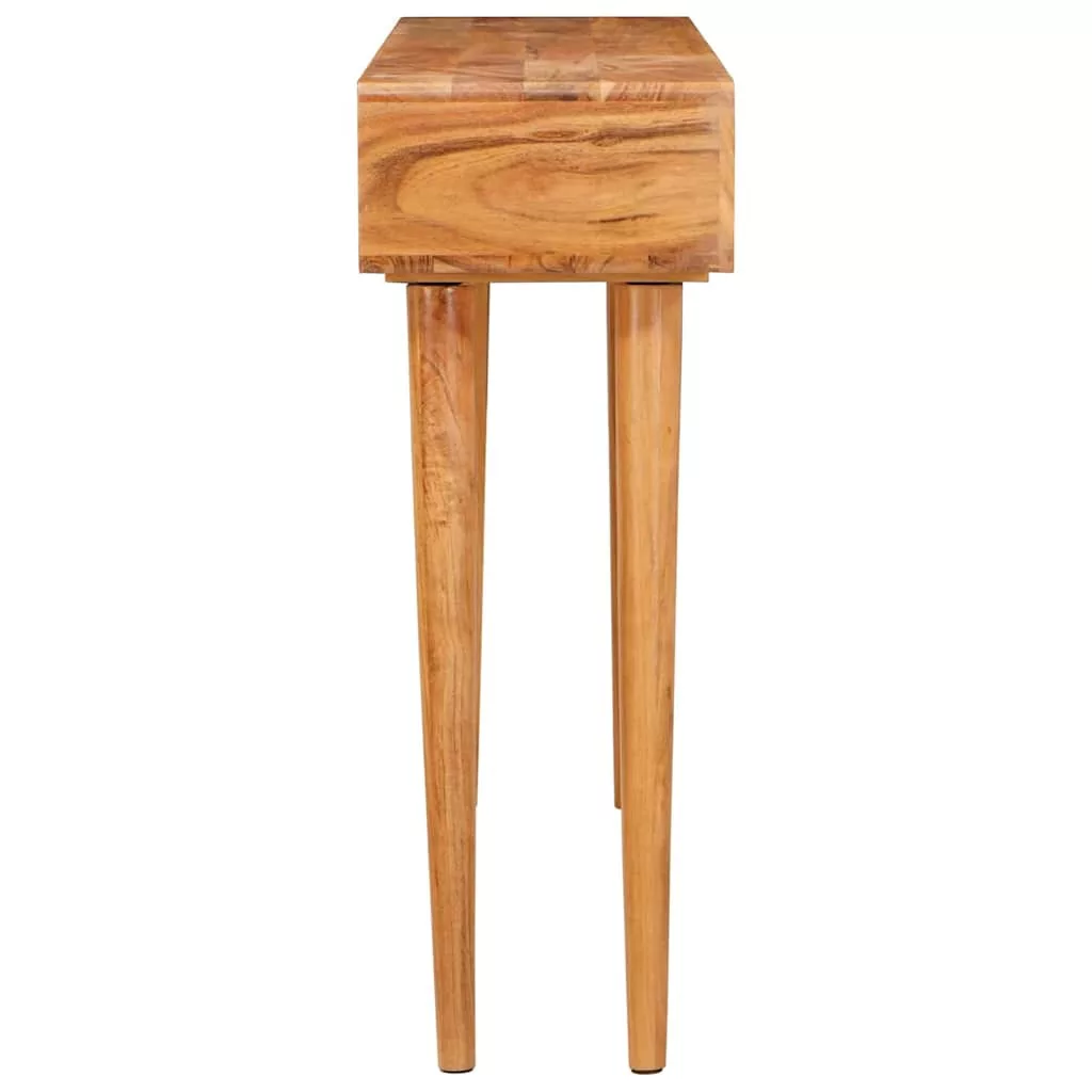 - Beépített Komponensek: Funkcionalitásra tervezve ez a darab fiókokat tartalmaz, amik ugyanabból a tömör akácfából készültek, így bőven van hely a dolgok szépen rendezett tárolására. A fiókok simán nyílnak és záródnak, még praktikusabbá téve az asztalt, miközben a letisztult külsőt megőrzi. A kúpos lábai biztosítják a stabilitást és elegáns, légies hatásúak.