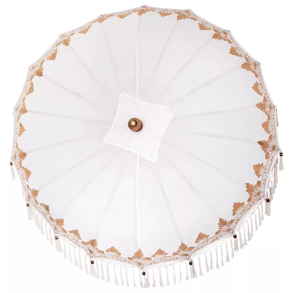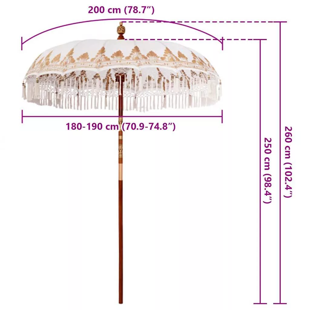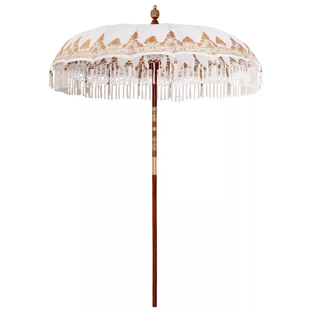 Ez a balinéz napernyő csempészi a balinéz dizájn nyugodt szépségét az Ön kültéri terébe. Rengeteg árnyékot ad, az erős, kézműves fából készült oszlop, pamut tető és bambusz gerendák harmonikus esztétikát teremtenek, ami ideális a csendes kerti menedékekhez. Legyen az a hátsó kertben vagy teraszon, az ernyő földszínei és szép díszítése gazdagítják a teret egy csipet trópusi eleganciával – hívogatva a pihenésre és kellemes nyári napokra.