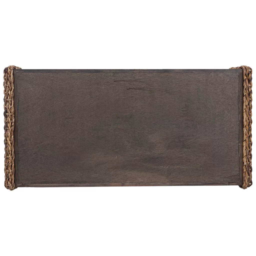 - Prémium anyagok: Tömör mahagóni fa, ami híres tartósságáról és szép megjelenéséről, plusz rattan díszítéssel, ami feldobja az asztal megjelenését. Az MDF felület pedig jól bírja a mindennapi használatot.