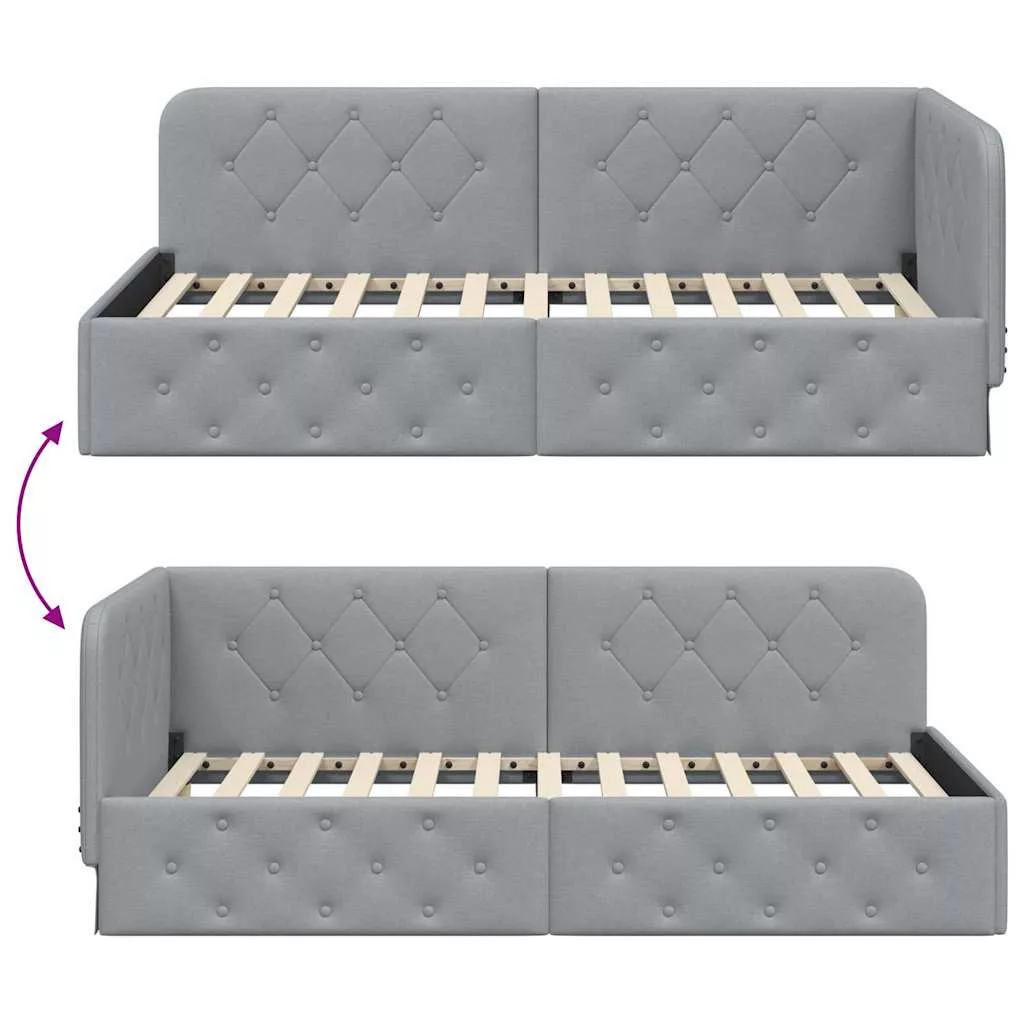 Ez a modern L-alakú sarokágykeret remekül illeszkedik a sarkokba, így segít maximálni a hálószoba terét. Az állítható karfa miatt rugalmasan állíthatod be a dizájnt az igényeidnek megfelelően. A többfunkciós dizájn könnyen átalakul kanapéból ággyá, ami változatos lehetőséget kínál pihenésre vagy alvásra. Tiszta vonalai és minimalista megjelenése stílusos frissességet ad a hálószobának.