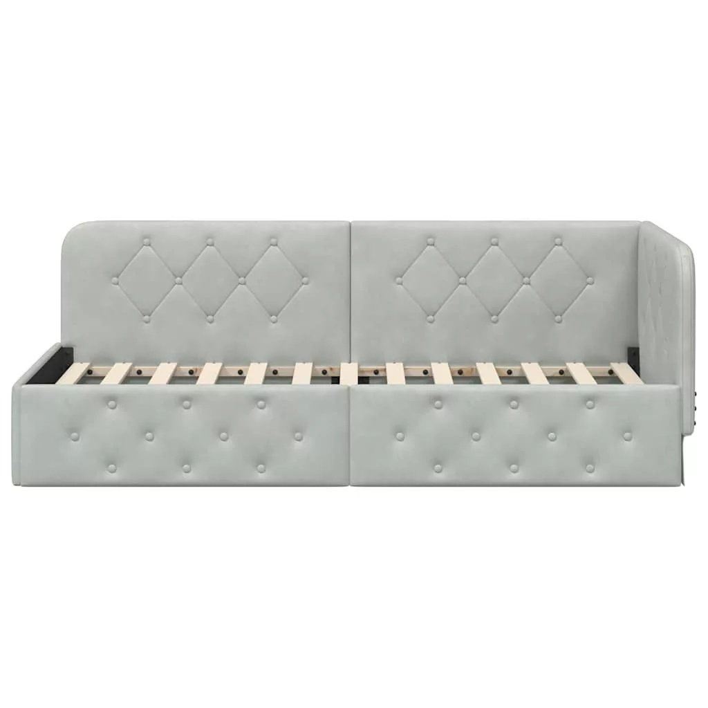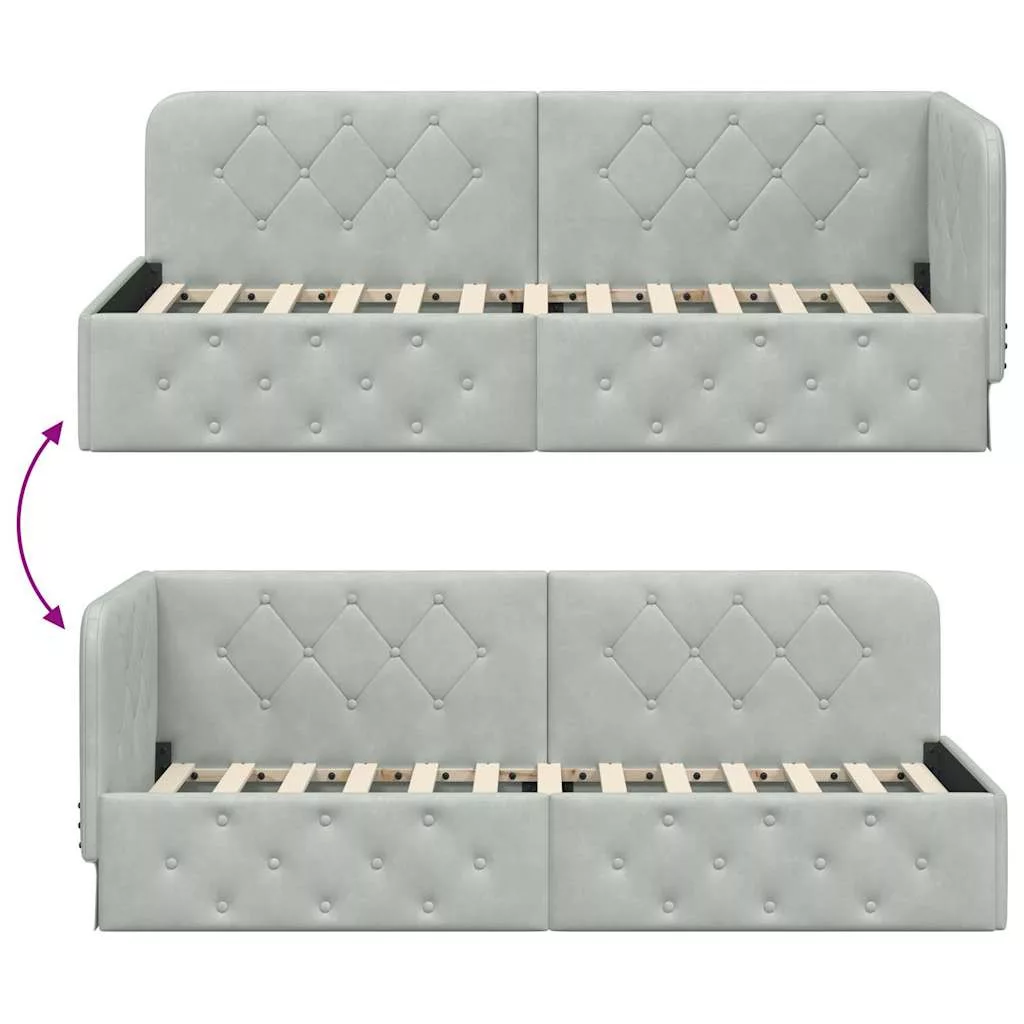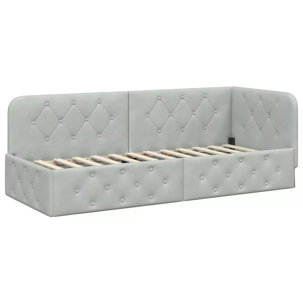 - Modern stílus: Tiszta vonalak és egyszerű L-alakú formája tűnik ki, ez a sarokágykeret a modern és minimalista irányzatokat követi. A bársony kárpit mélységet ad a dizájnnak, így könnyen illik különböző hálószoba bútorokhoz és díszítőelemekhez.