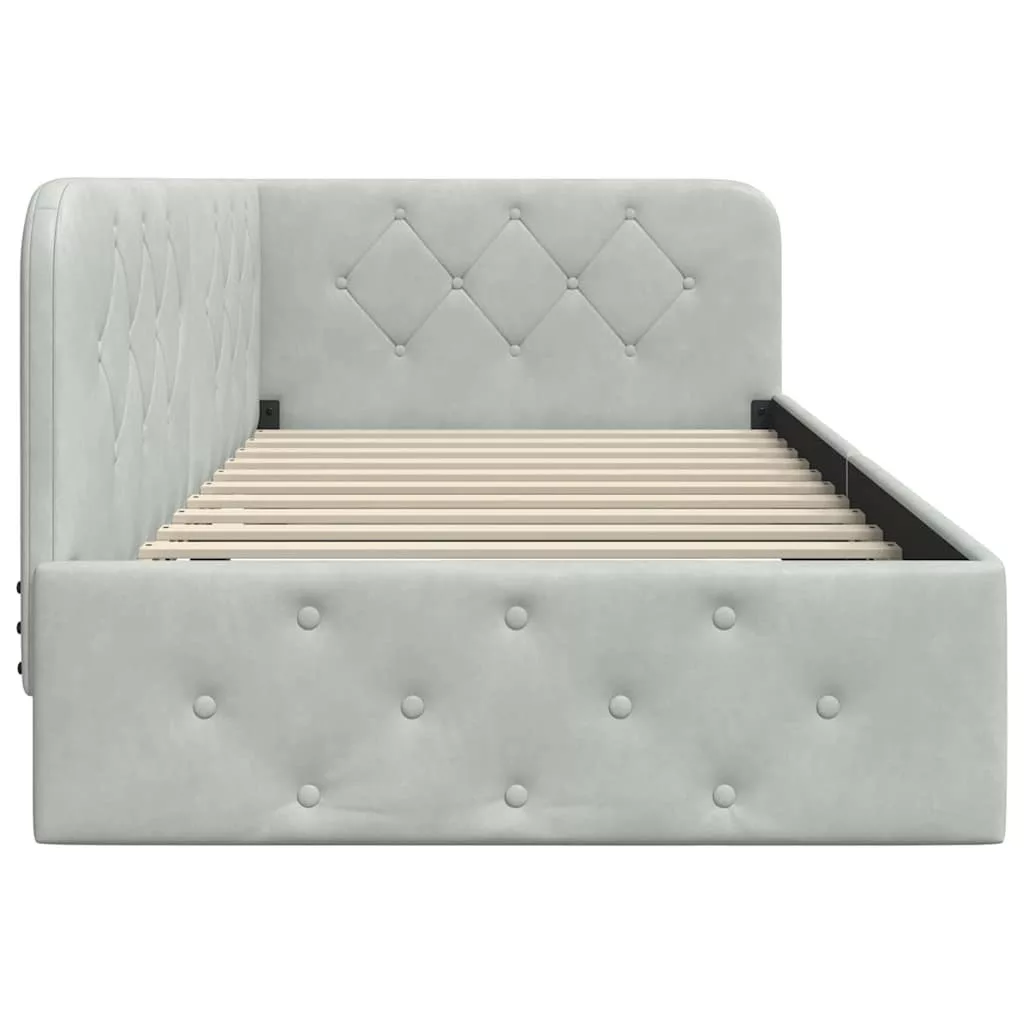 - Modern stílus: Tiszta vonalak és egyszerű L-alakú formája tűnik ki, ez a sarokágykeret a modern és minimalista irányzatokat követi. A bársony kárpit mélységet ad a dizájnnak, így könnyen illik különböző hálószoba bútorokhoz és díszítőelemekhez.