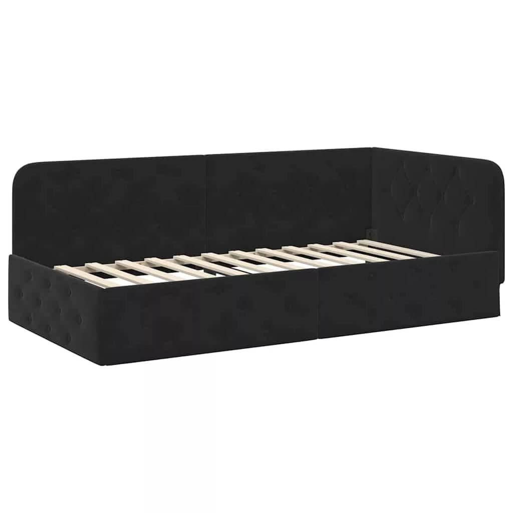 - Modern stílus: Tiszta vonalak és egyszerű L-alakú formája tűnik ki, ez a sarokágykeret a modern és minimalista irányzatokat követi. A bársony kárpit mélységet ad a dizájnnak, így könnyen illik különböző hálószoba bútorokhoz és díszítőelemekhez.