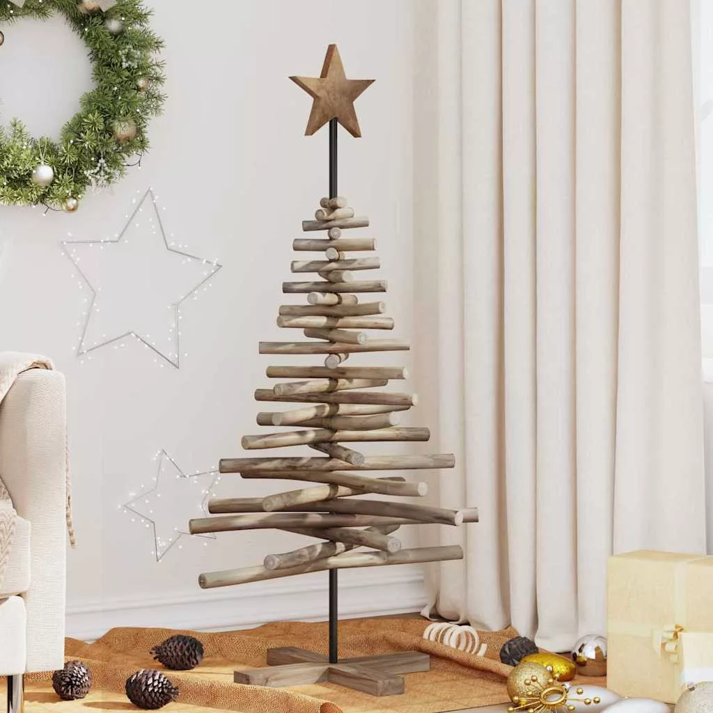 Ez a Modern Karácsonyfa a rusztikus szépség és a tartós kézműves munka tökéletes keveréke. Bármilyen életteret ünnepi atmoszférával töltsön meg. Az elegáns, tömör tíkfa anyag és a semleges barna szín természetes melegséget ad bármilyen beltéri vagy védett kültéri szónak. Az egyszerű összeszerelés lehetővé teszi, hogy a fa fókuszba kerüljön, és még inkább fokozza az ünnepi jókedvet, miközben illeszkedik a különböző díszítési stílusokhoz, akár a nappali sarkában, akár egy nyitott folyosón, ahol a látogatók élvezhetik.