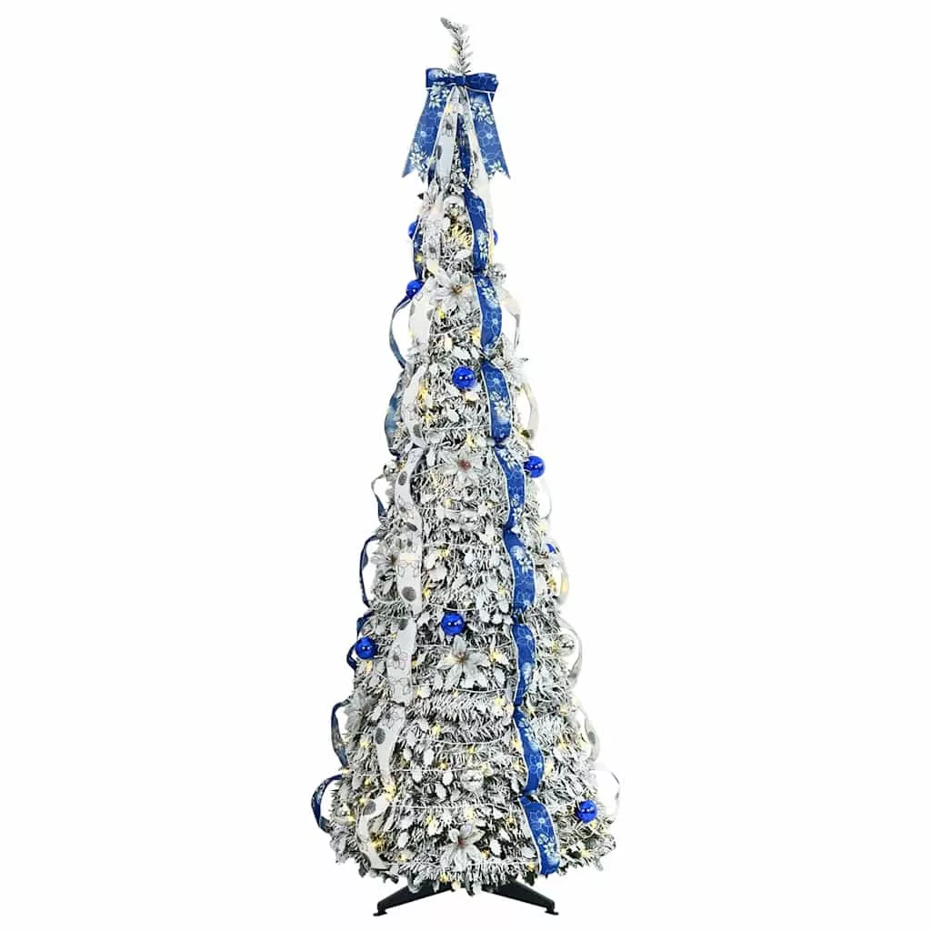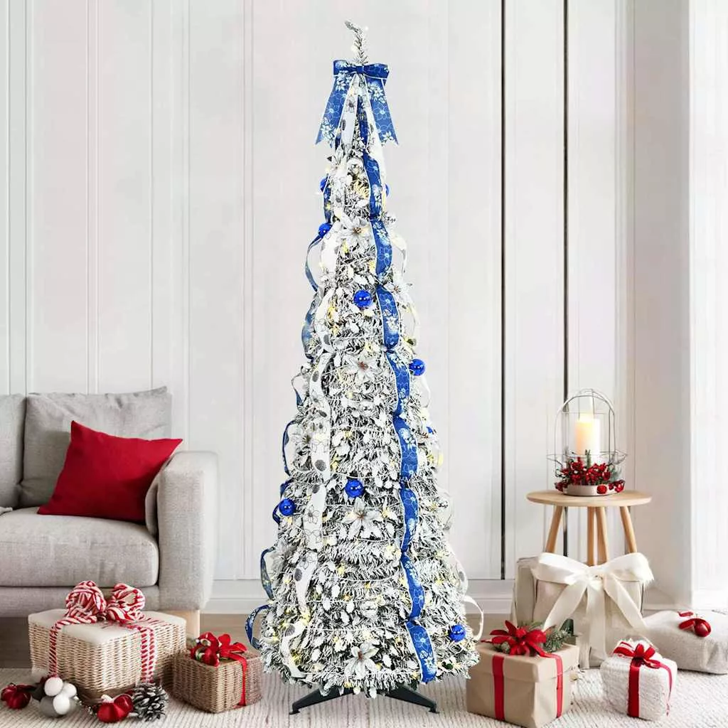 - Prémium anyagok: Ez a műfa tartós PVC-ből és szilárd vas csövekből készült, így hosszú élettartamot biztosít. A PVC anyag élethű lombozatot ad, a vas váz pedig stabilan tartja az egész szerkezetet, így tökéletes középpontja lehet a karácsonyi buliknak.
