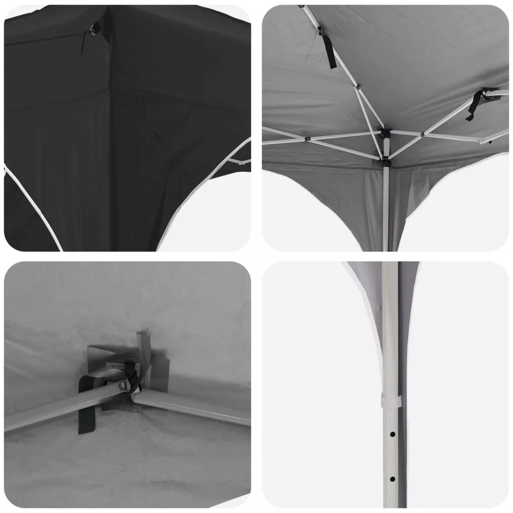 - Jellemzők / Funkció / Dizájn: A sátor manuális magasságállító mechanizmussal van ellátva, amivel három szint között választhatod meg a magasságot. Rugalmas dizájnja lehetővé teszi, hogy igazodj a különböző eseményekhez, miközben stabilan megáll.