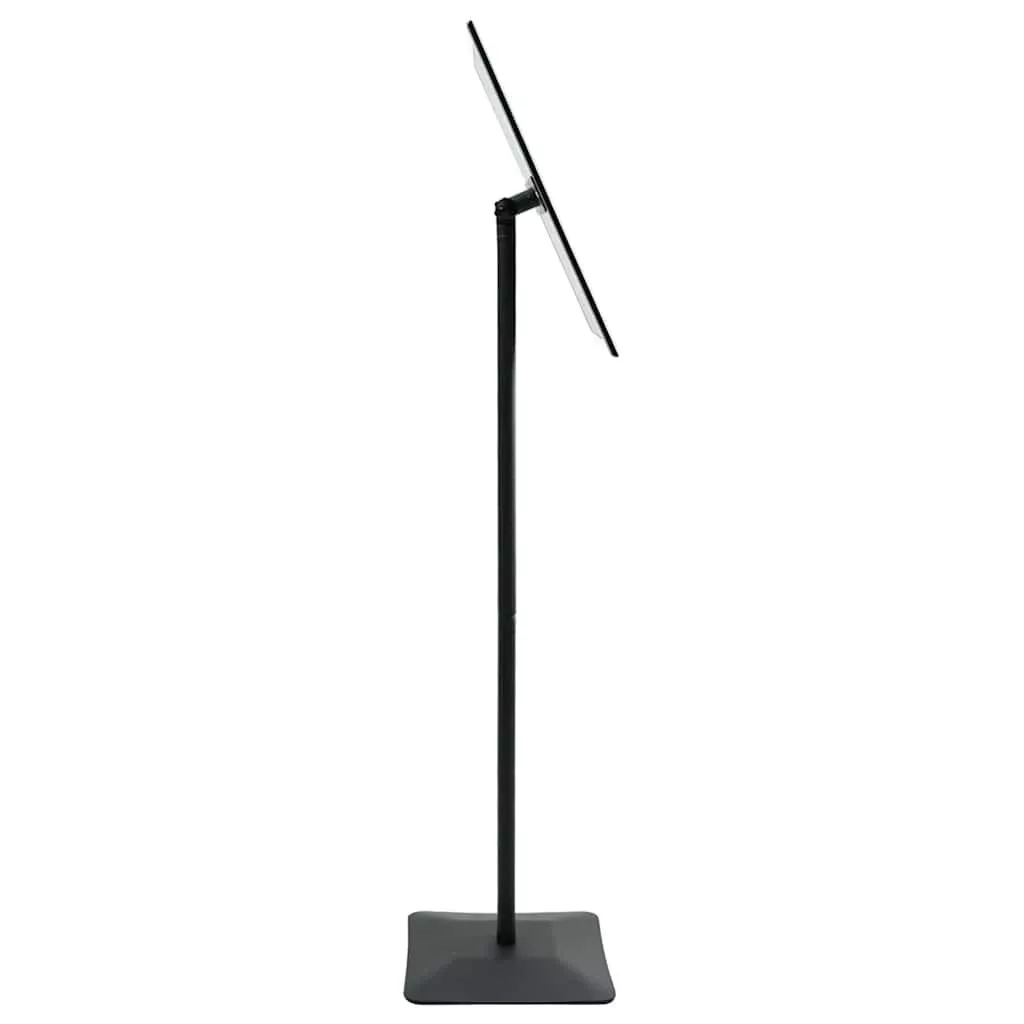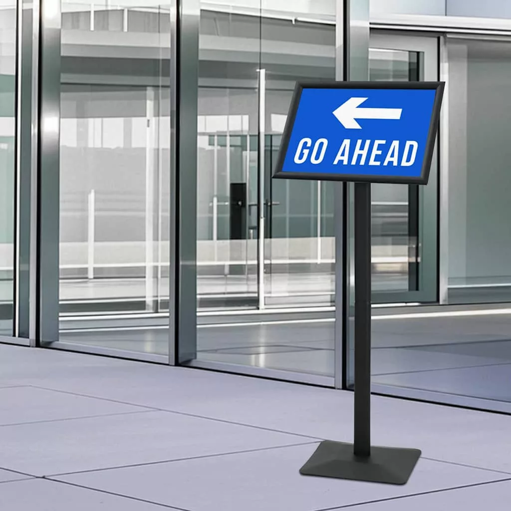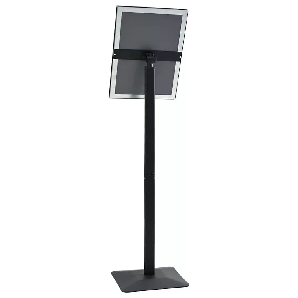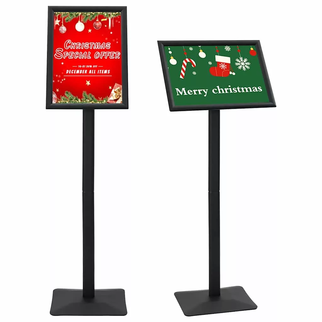 - Anyagösszetétel: A plakátállvány erős öntöttvas alappal és alumínium kerettel bír, ami biztosítja a stabilitást és a strapabírást. A kijelzőpanel PS lemezből készült, PVC védelemmel, így sima felületet ad a grafikai bemutatóknak, és lehetővé teszi a poszterek könnyű cserélését.