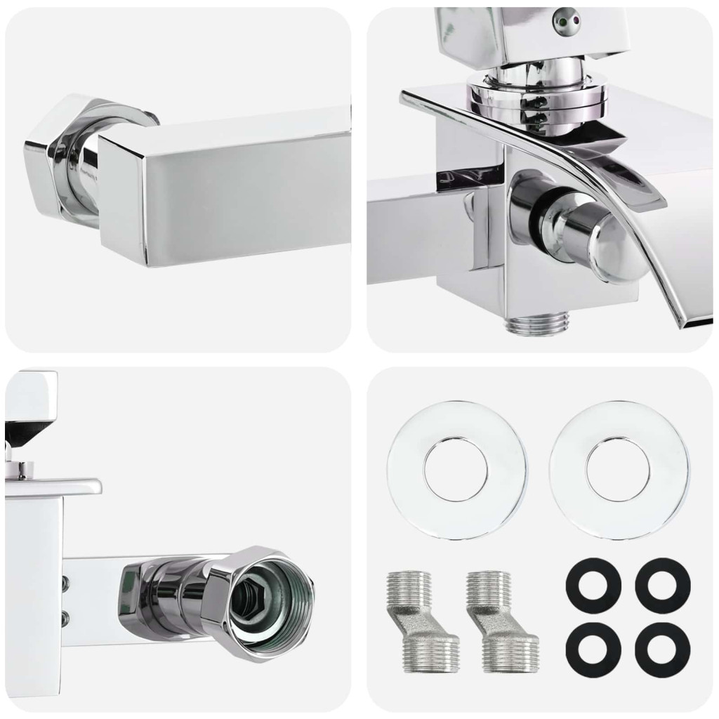 - Belső elemek: A készlet mindent tartalmaz, amire szükséged van az egyszerű és zökkenőmentes összeszereléshez. Minden alkatrész, a masszív zuhanyfejtől a felhasználóbarát vízváltóig, hozzájárul a valódi zuhanyélményhez.