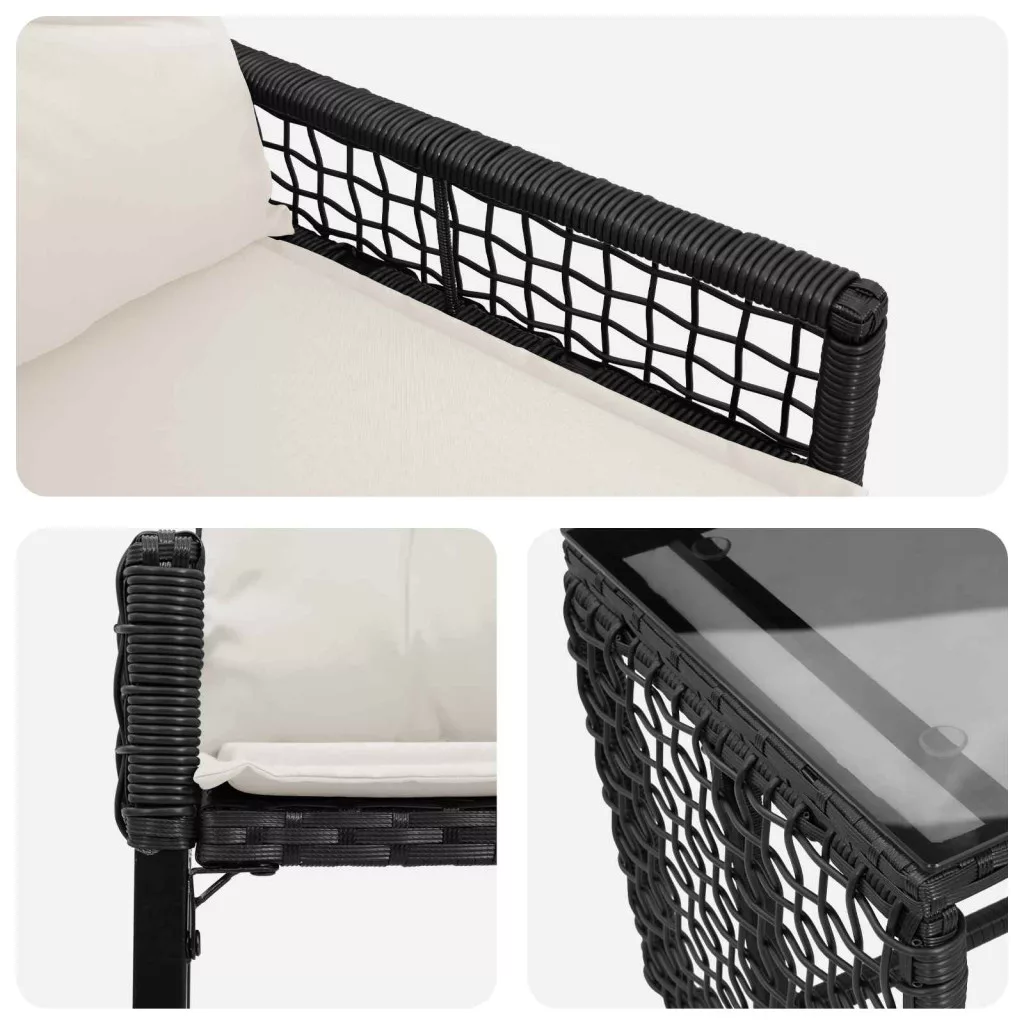 - Kültéri sokoldalúság: A szett kültéri használatra készült, és a belső tér kényelmét hozza a szabadba. Legyen szó lazulásról vagy szórakozásról, tartós felépítése bírja a különböző időjárási viszonyokat, így tökéletes a tavaszi és nyári összejövetelekhez a kertben vagy teraszon.