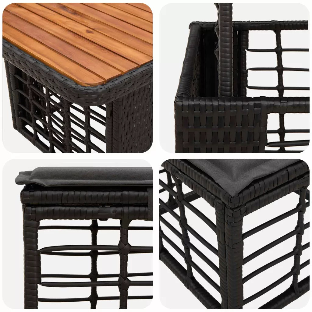 - Időjárásálló anyagok: Poli rattan és akácfa anyagok, amik bírják a kültéri időjárást. A poli rattan UV-álló, így nem fakul, míg az akácfa elviseli a közvetlen nedvességet, ezzel hosszú élettartamot biztosítva.