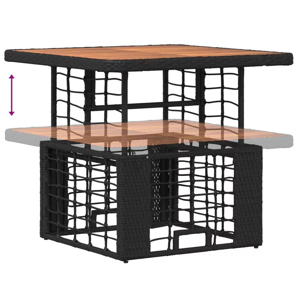 Ez a Modern Kerti Étkezőszett a rusztikus elegancia és a masszív dizájn tökéletes keverékét adja, ami ideális a kültéri étkezésekhez. A szett részletes kidolgozású poli rattan és tömör akácfa elemekből áll, ami szépen megjelenik a kertben vagy teraszon. A természetes bája és modern vonzereje barátokat és családtagokat vonz, ideális helyet biztosít vidám bruncsokhoz, nyugodt estéhez és ünnepi összejövetelekhez.