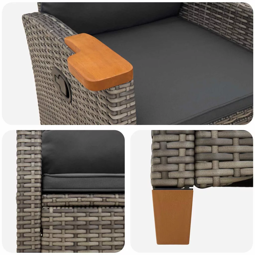 • Állítható háttámla: Kényelmesen testre szabható a manuális, több pozíciós háttámlával. Egyszerűen állítsd be a neked megfelelő szögre olvasáshoz, pihenéshez vagy a természet élvezetéhez. Ez a funkció még kellemesebbé teszi a kerti pihenést.