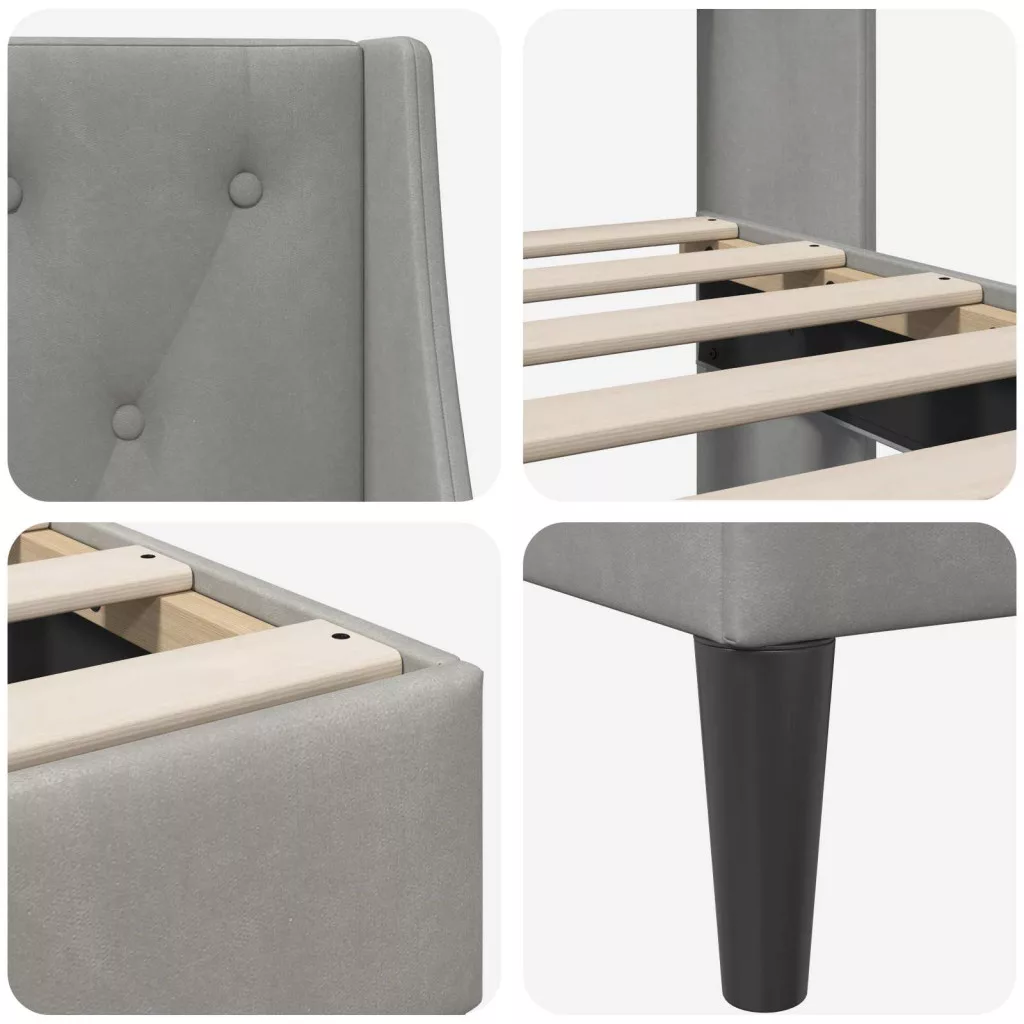 - Karbantartás: Az ágykeret külsejének fenntartása gyerekjáték; csak egy nedves dologra van szükséged, hogy mindig friss és új állapotban tűnjön. Ez a könnyű karbantartás biztosítja, hogy a bársonyos felület mindig tiszta és portalan marad, így éveken át szép marad.