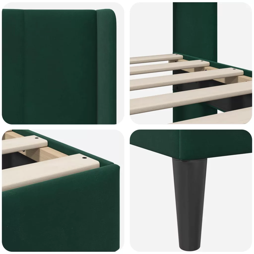 - Bársonyos anyag: Ez az ágykeret puha bársonyos felülettel rendelkezik, ami luxust és kényelmet ad. A bársony tartós anyag, ami bármilyen színpalettához passzol, így az ágy időtállóan mutat a hálószobádban.
