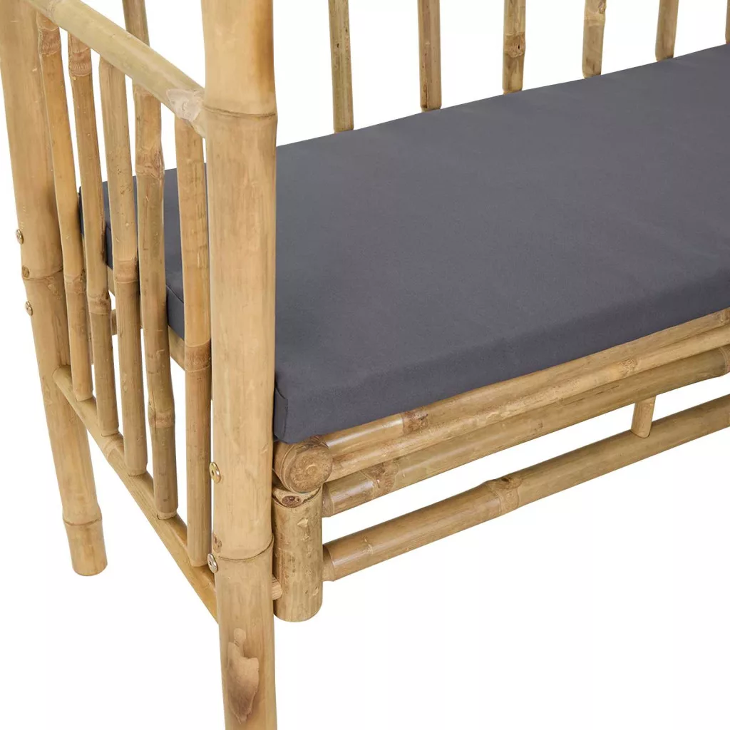 - Anyagok: A kerti pad bambuszból készült, ami megújuló és fenntartható. A bambusz természetes felülete egyedi megjelenést ad, ami jól illik a kert tájához. Szálai erősek, de mégis rugalmasak, így a pad szép marad és jól működik az idő múlásával.
