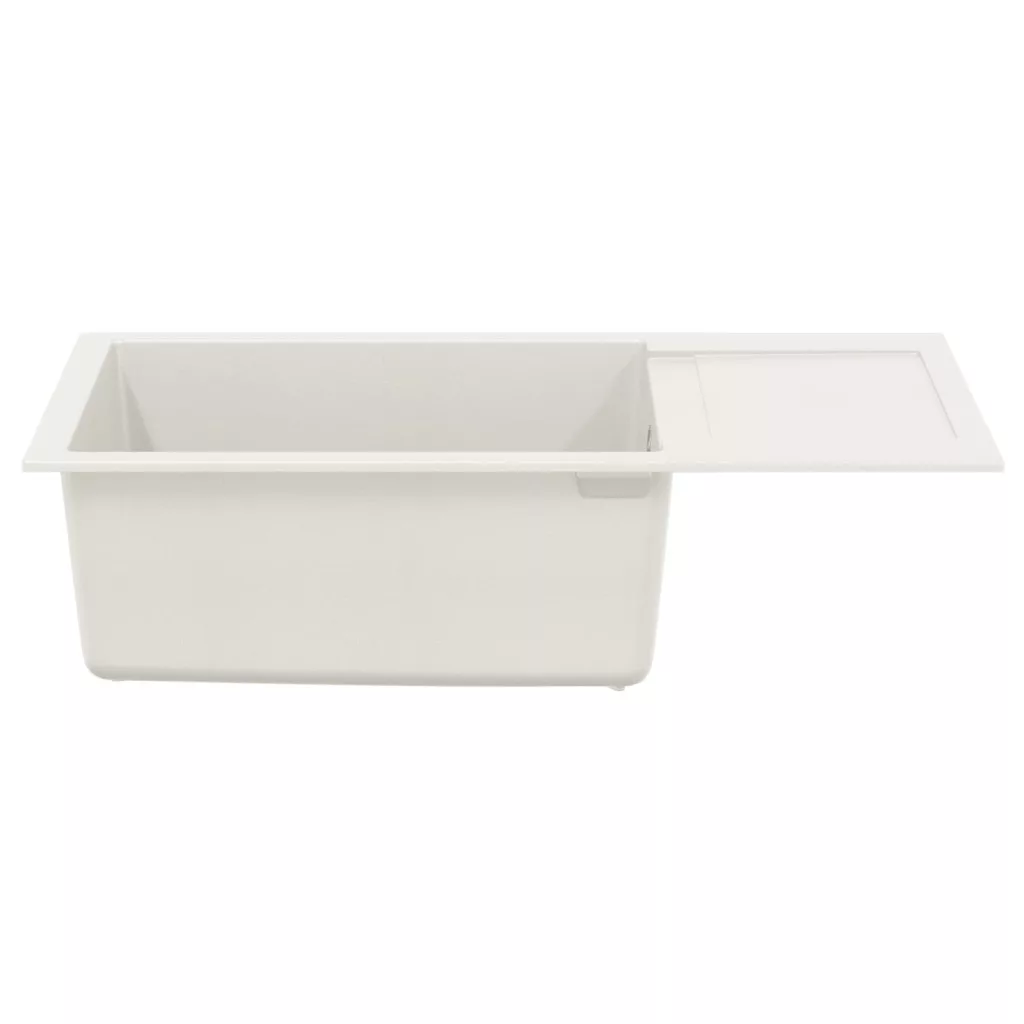 - Anyagok: Készül egy speciális keverékből, 80% kvarcból és 20% gyantából, ami extra tartósságot biztosít. Ez az összetétel remek ellenállást nyújt a karcoknak, így a mosogató megőrzi a hibátlan kinézetét még intenzív használat során is.