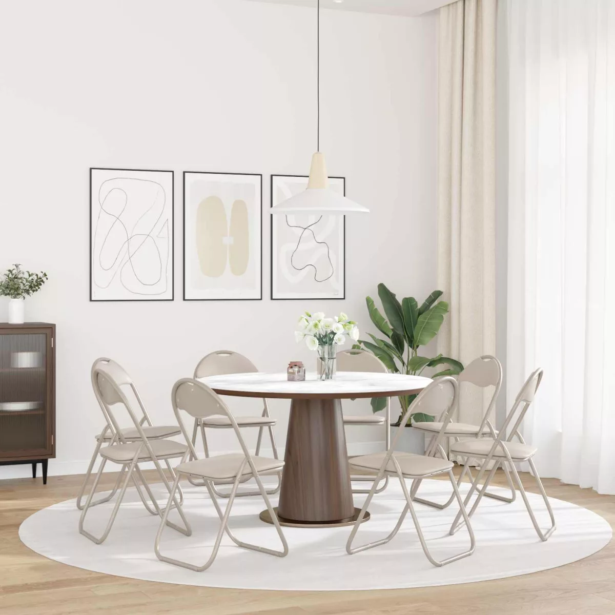 A Modern Összecsukható Étkezőszék a kényelmet és praktikumot ötvözi letisztult, minimalistának számító dizájnjával. Összecsukható szerkezete lehetővé teszi a könnyű tárolást, amikor nincs használatban, így spórolhatsz a hellyel, miközben különböző belső stílusokat egészít ki.