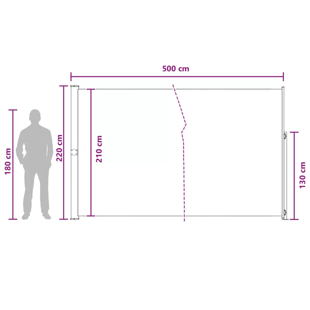Ez a tartós behúzható oldalsó napellenző tökéletes védelmet és árnyékot kínál a kültéri terednek. Stílusosan megtervezett, ez az állítható napernyő megóv a tűző napsütéstől és a kíváncsi tekintetektől a teraszon, udvaron vagy a kertben. Modern dizájnja szépen illik különböző kültéri dekorációkhoz.