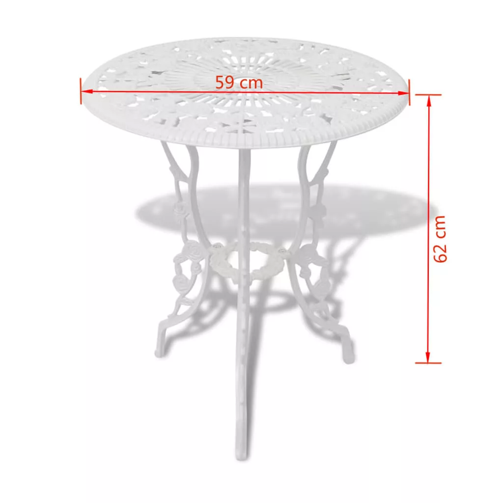 Kiváló minőségű öntött alumíniumból készült, így időjárásálló és rendkívül tartós. Az öntött vas lábai további szilárdságot adnak a készlethez. A részletes virág mintája bármilyen kerthez vagy sétaudvaroz egy kis visszahúzódott romantikus jelleget ad.