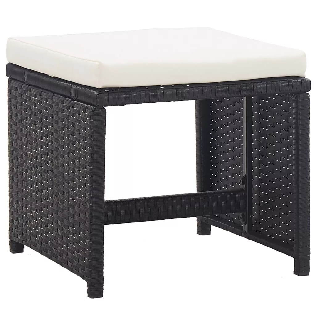 Ez a rattan étkezőszett elegáns kialakításával tökéletes választás kerti vacsorákhoz vagy pihenéshez. A porszórással felületkezelt acél váznak köszönhetően az asztal, a székek és a puffok is erősek és strapabírók, míg pehelysúlyú szerkezetüknek hála könnyen mozgathatók. Időjárás- és vízálló PE rattan anyagának köszönhetően az étkezőszett könnyedén tisztítható. Az asztal üveglapja egy nedves ronggyal szintén egyszerűen tisztítható.