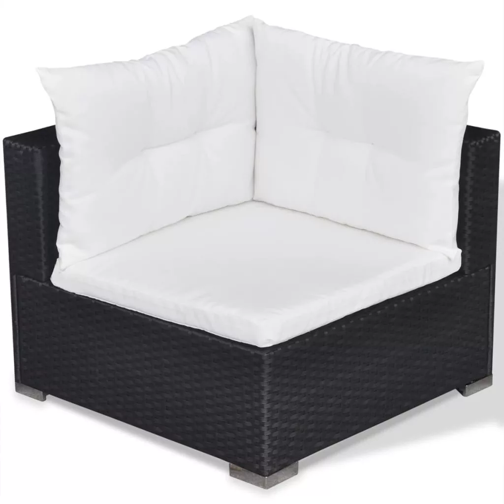 A szállítmány 2 sarokkanapét, 1 középső kanapét, 1 zsámolyt, 1 dohányzóasztalt és 9 párnát tartalmaz. Megjegyzés : Eső, hó vagy fagy esetén azt tanácsoljuk, hogy takarja le a garnitúrát.