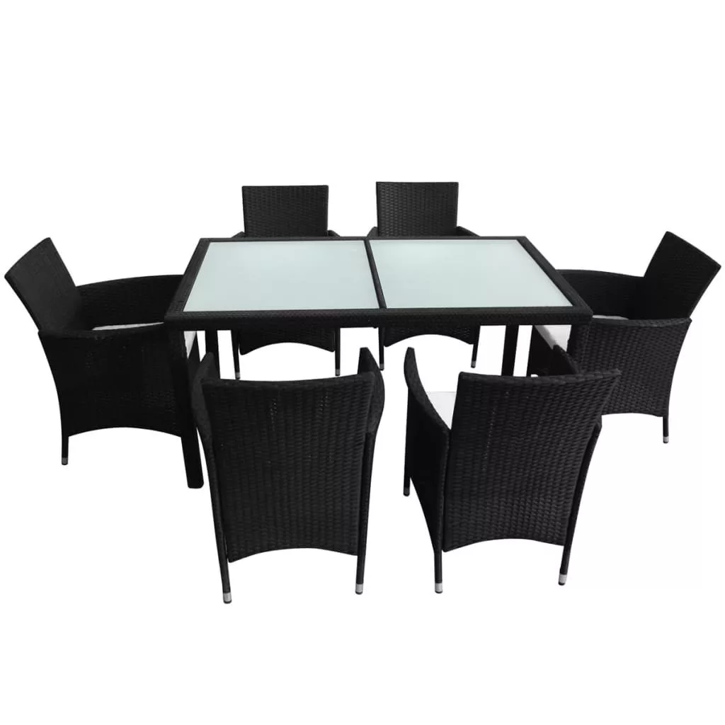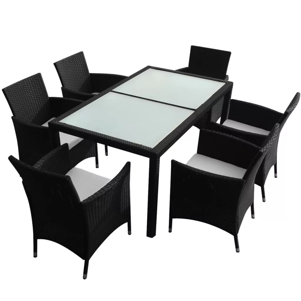 Ez a különleges dizájnú kerti rattan garnitúra 1 db asztalból, 6 db székből és 6 db levehető székpárnából áll, és biztosan kertje vagy terasza a fénypontja lesz.