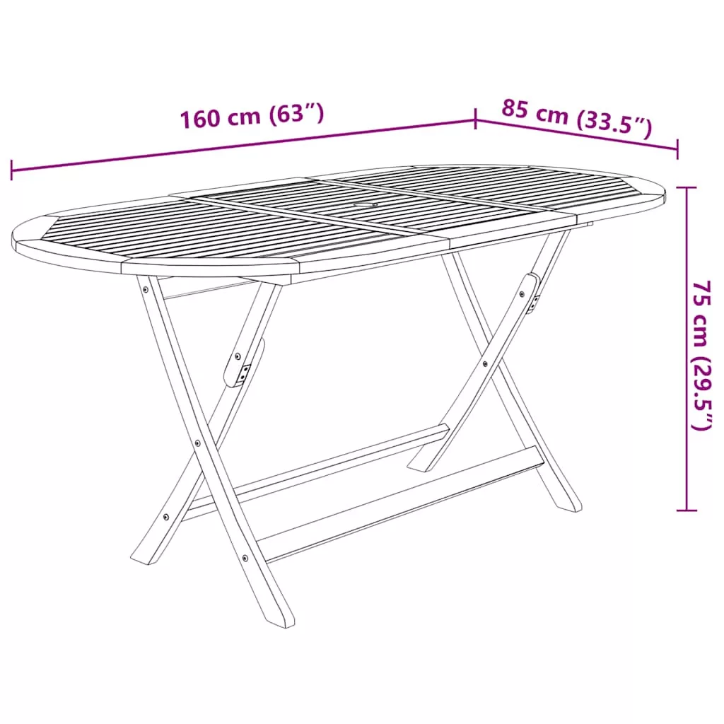A szállítás 1 db ovális asztalt és 8 db összecsukható karfás széket tartalmaz.